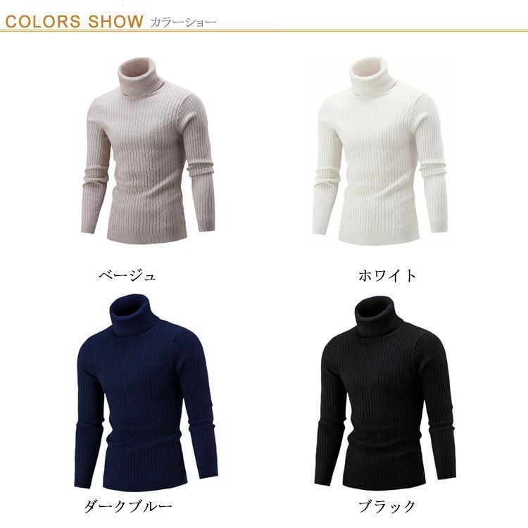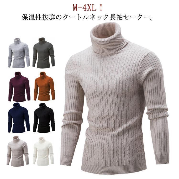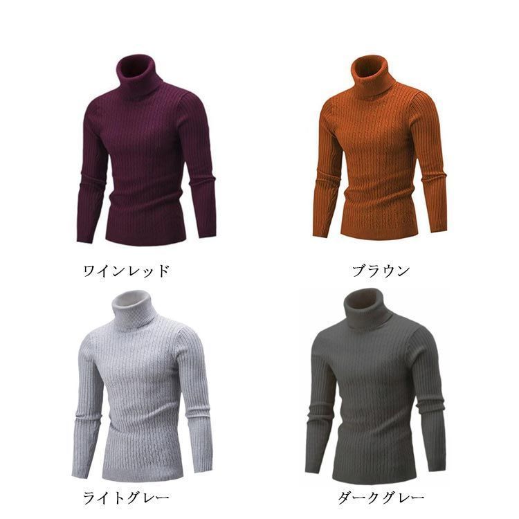 タートルネックセーター メンズ ニット ハイネック トップス スリム 大きいサイズ 長袖 防寒 暖かい 秋 冬 無地 シンプル