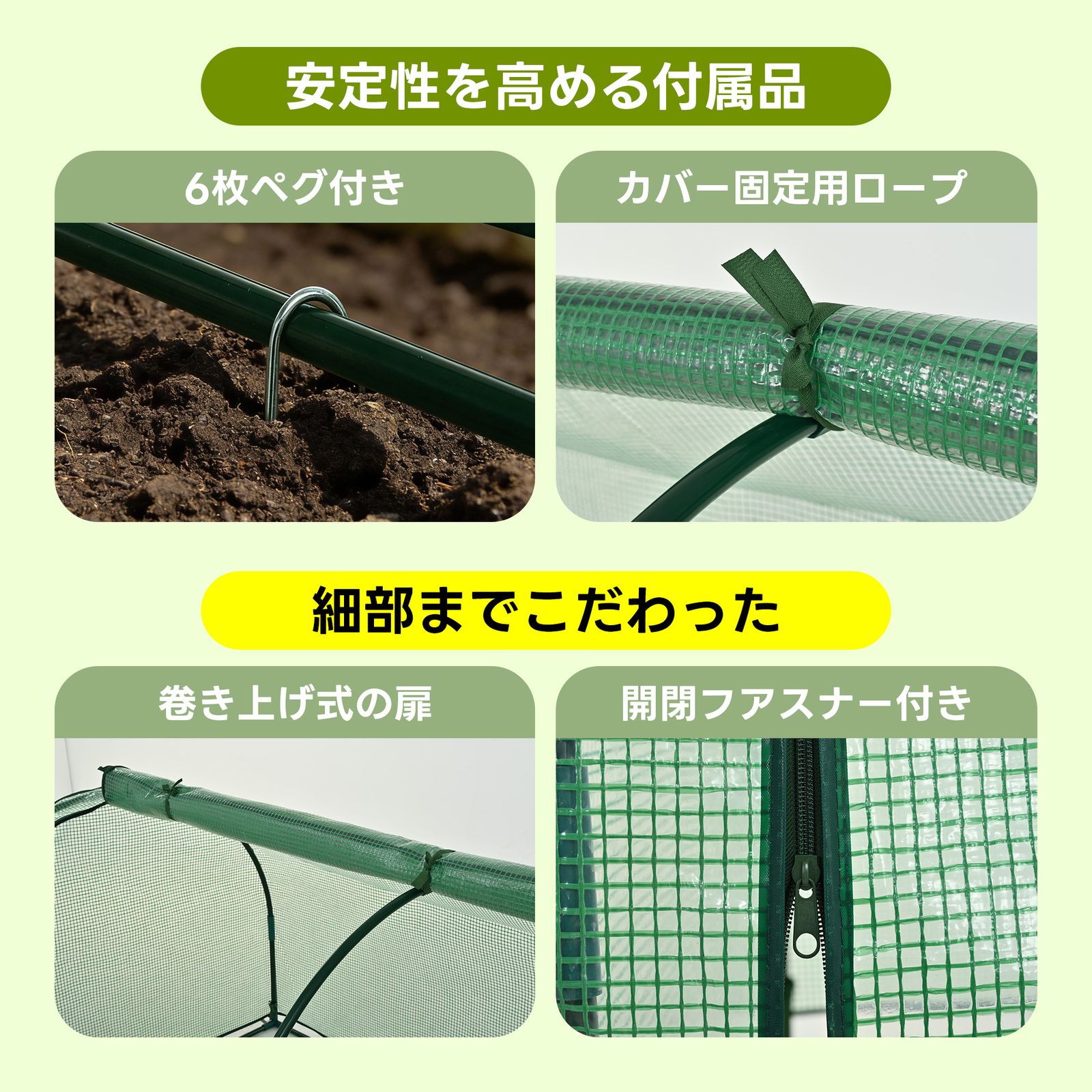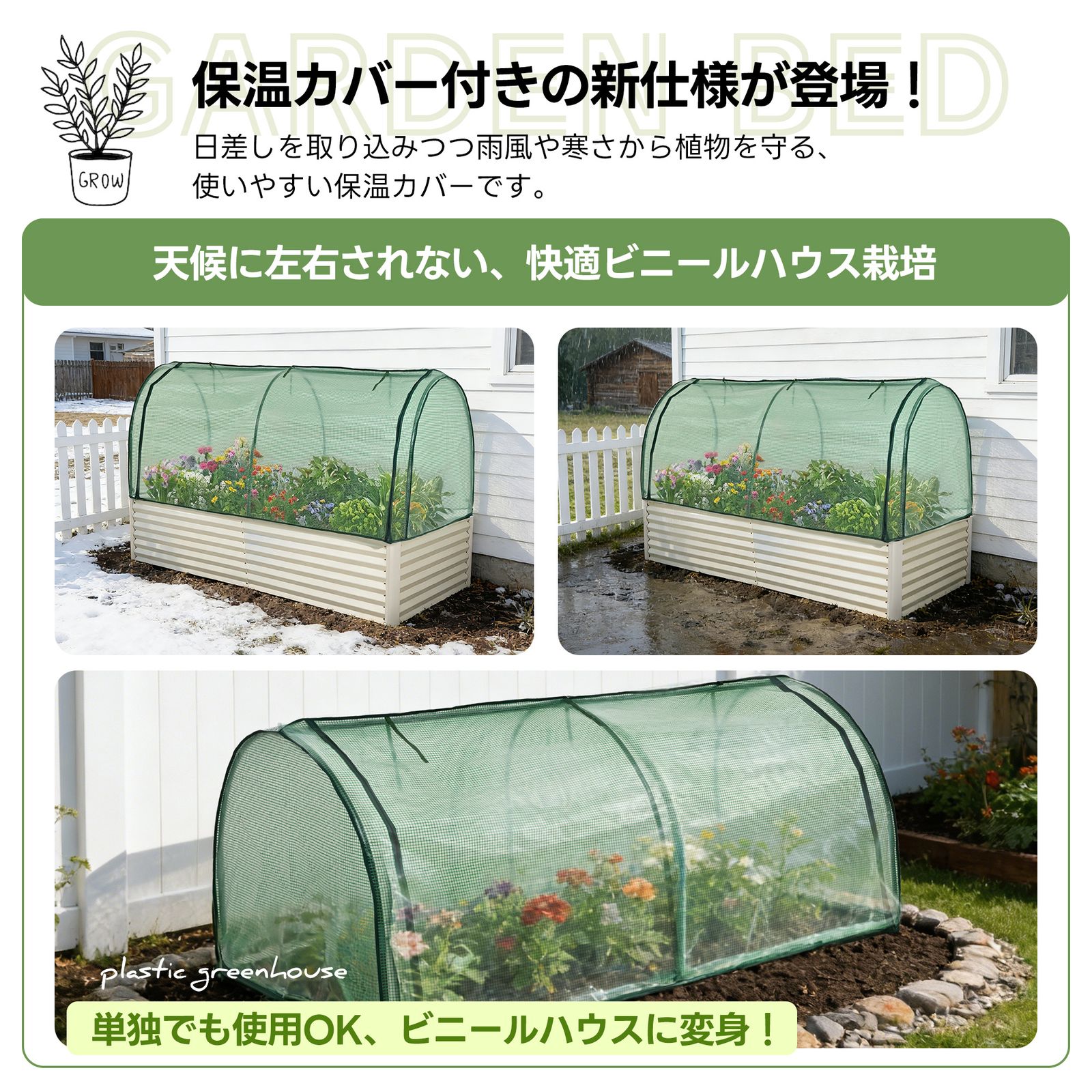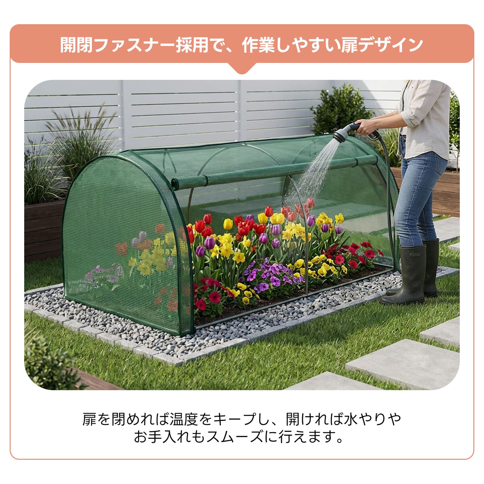 ◎01【 保温カバー付きの新仕様が登場!】天候に左右されない、快適ビニールハウス栽培。日差しを取り込みつつ雨風や寒さから植物を守る、使いやすい保温カバーです。単独でも使用OK、ビニールハウスに変身!開閉ファスナー採用で、作業しやすい扉デザイン扉を閉めれば温度をキープし、開ければ水やりやお手入れもスムーズに行えます。【安定性を高める付属品】6枚ペグ付き。 カバー固定用ロープ。【細部までこだわった】卷き上げ式の扉。開閉フアスナー付き。