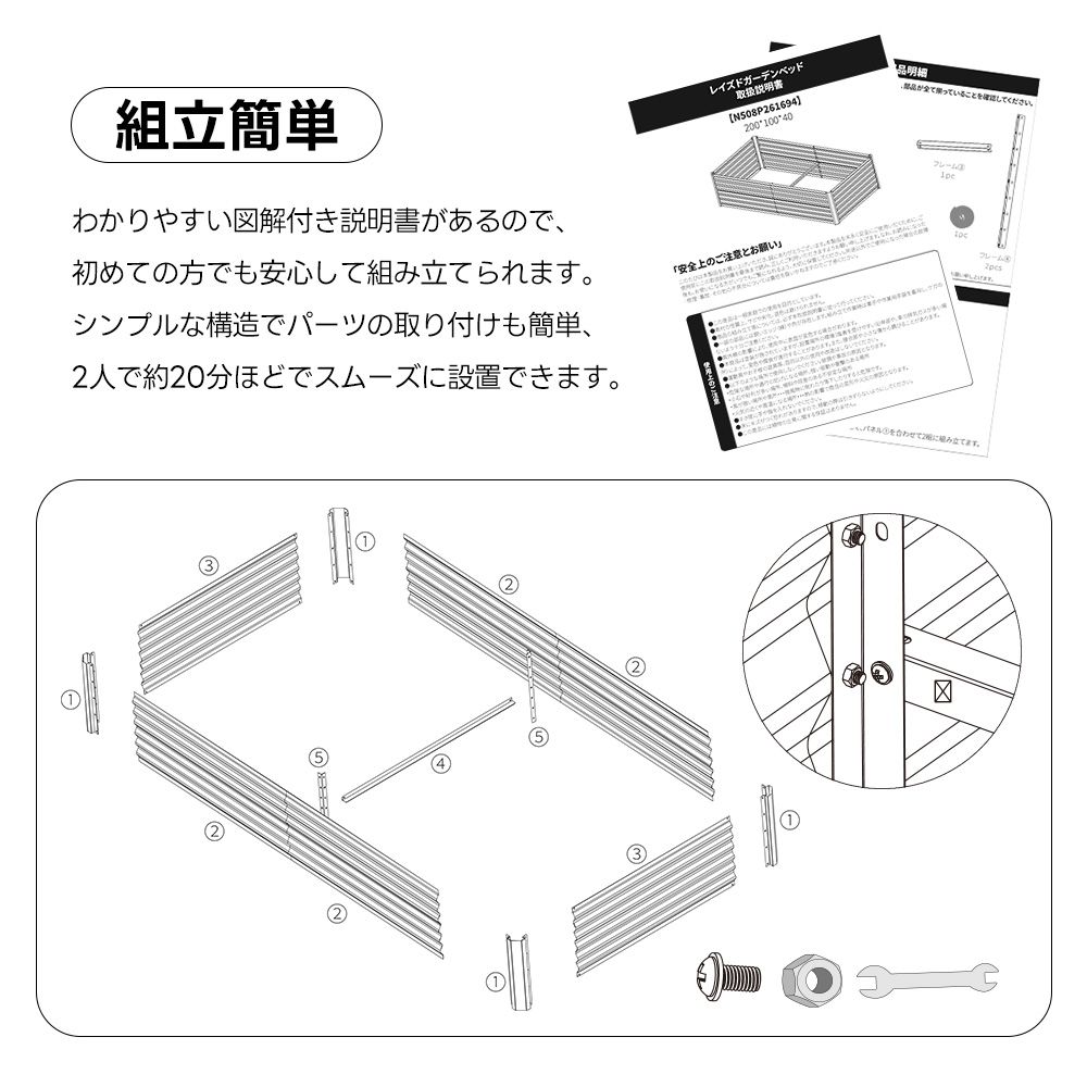 ◎02L200×W100×H45cmのゆとりあるスペース 広々としたサイズなので、野菜やハーブ、花々を自由に配置でき、自分だけの理想のガーデンスペースを作れます。