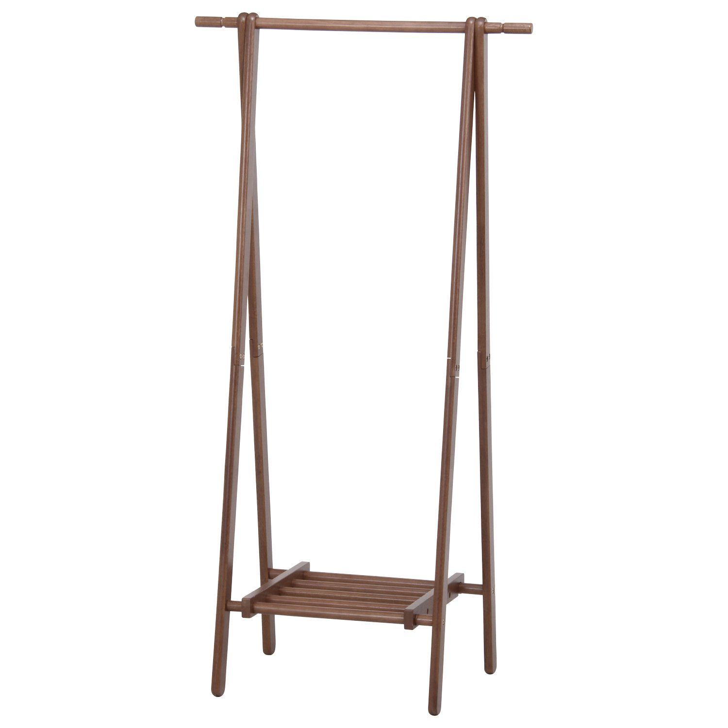 Color:ブラウン_Size:幅 75cm 不二貿易 コートハンガー ハンガーラック スリム 木製 幅75×奥行45×高さ147.8cm ブラウン 棚付き 玄関 14102