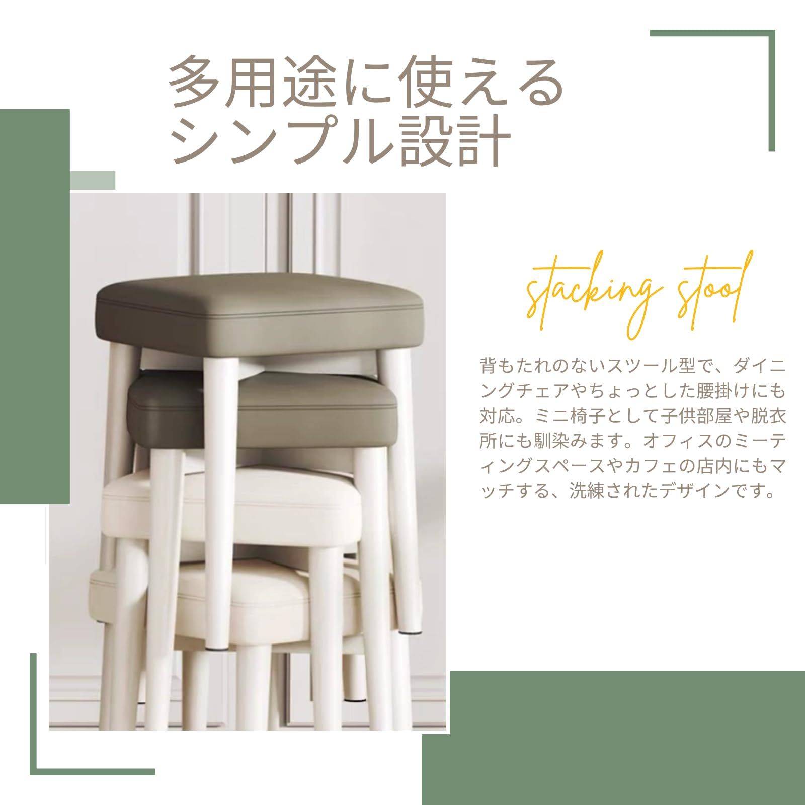 背もたれのないスツール型で、ダイニングチェアやちょっとした腰掛けにも対応。ミニ椅子として子供部屋や脱衣所にも馴染みます。オフィスのミーティングスペースやカフェの店内にもマッチする、洗練されたデザインです。【カラーと素材で印象アップ】