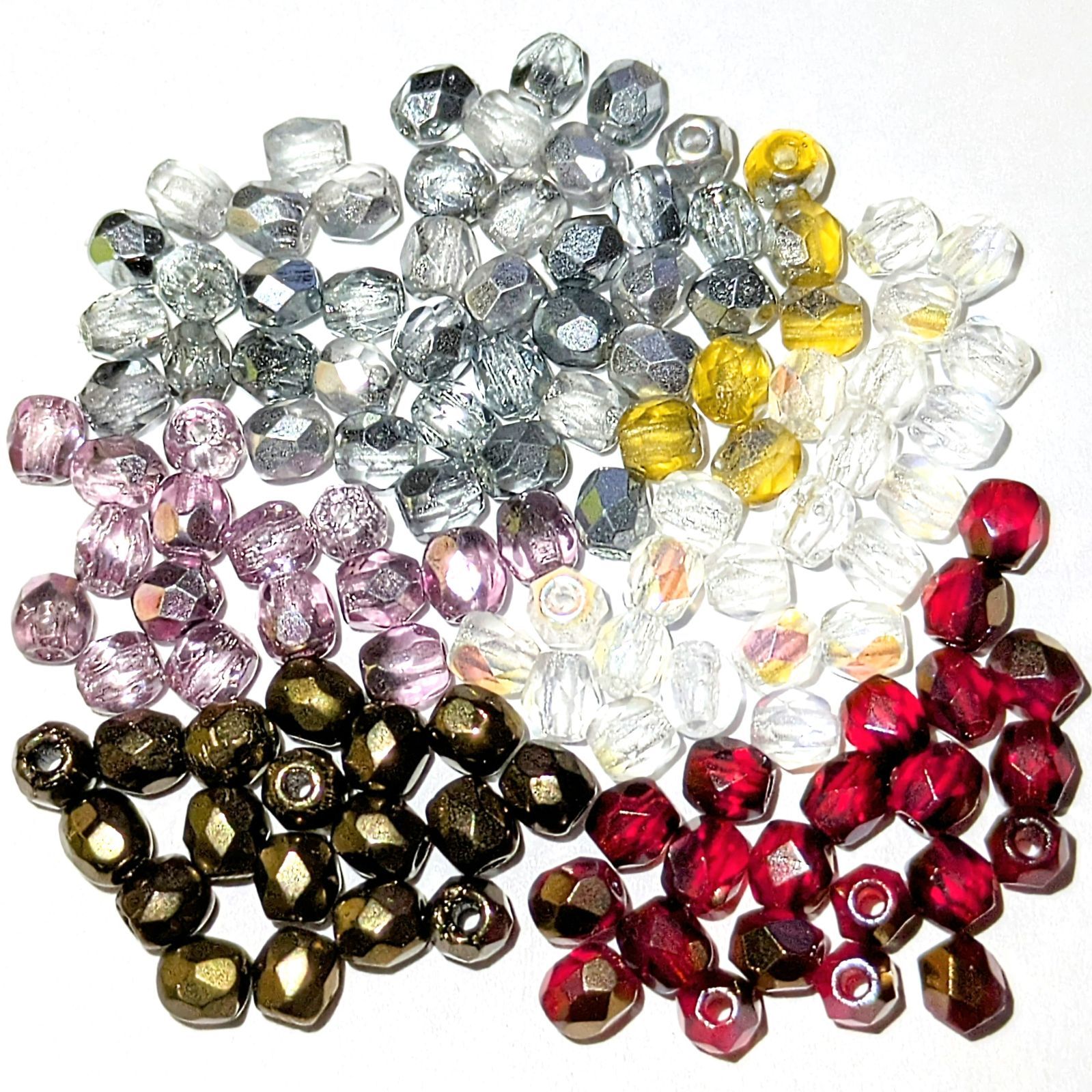 チェコビーズ ファイヤーポリッシュ 3mm クリスタルAB 他 合計124粒 まとめ売り