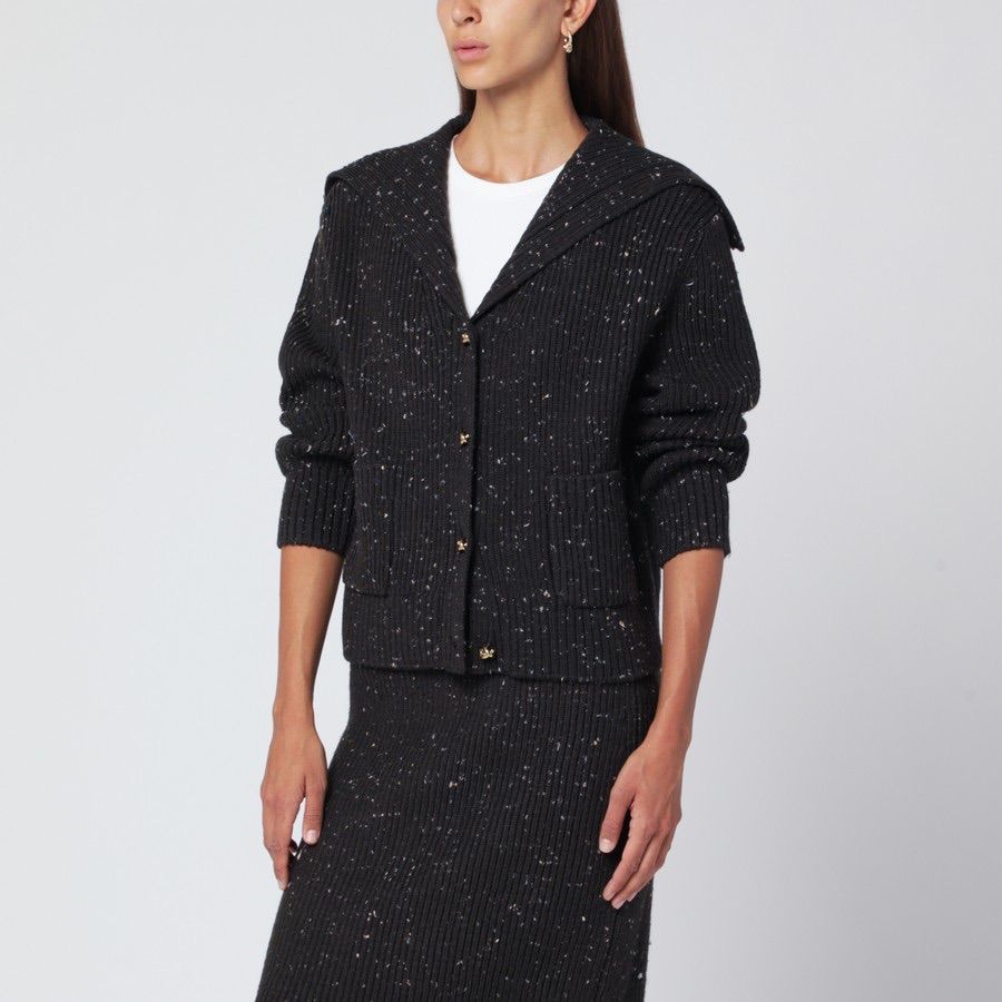 Bottega Veneta ダークリブの英国製ウールカーディガン