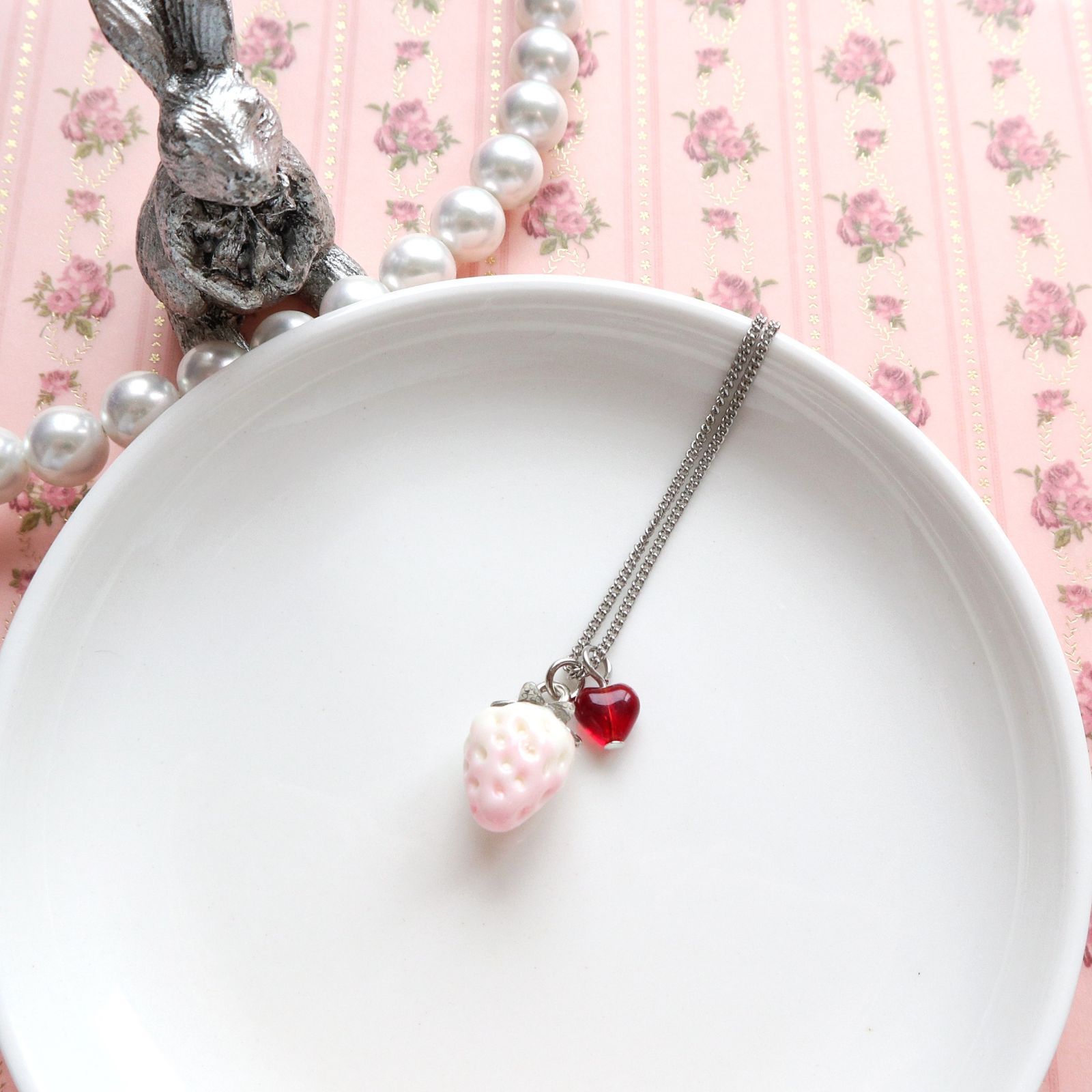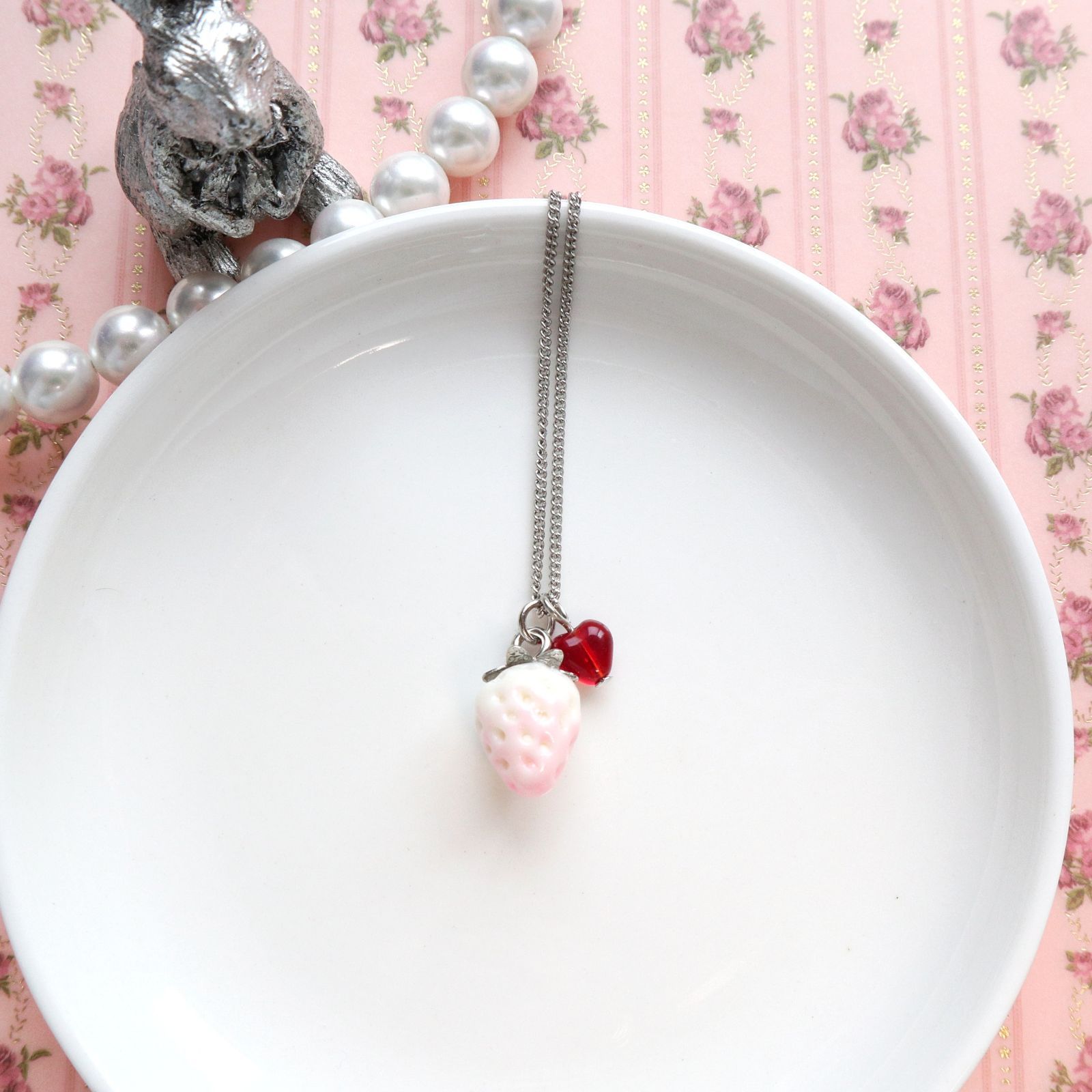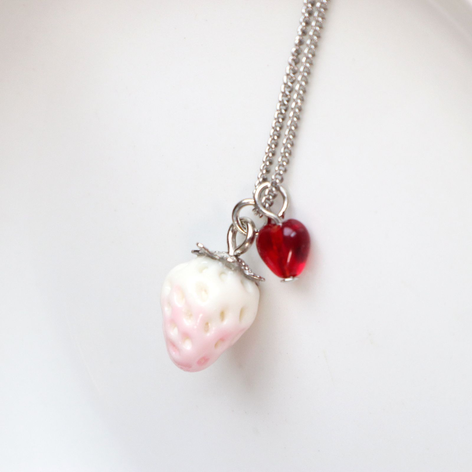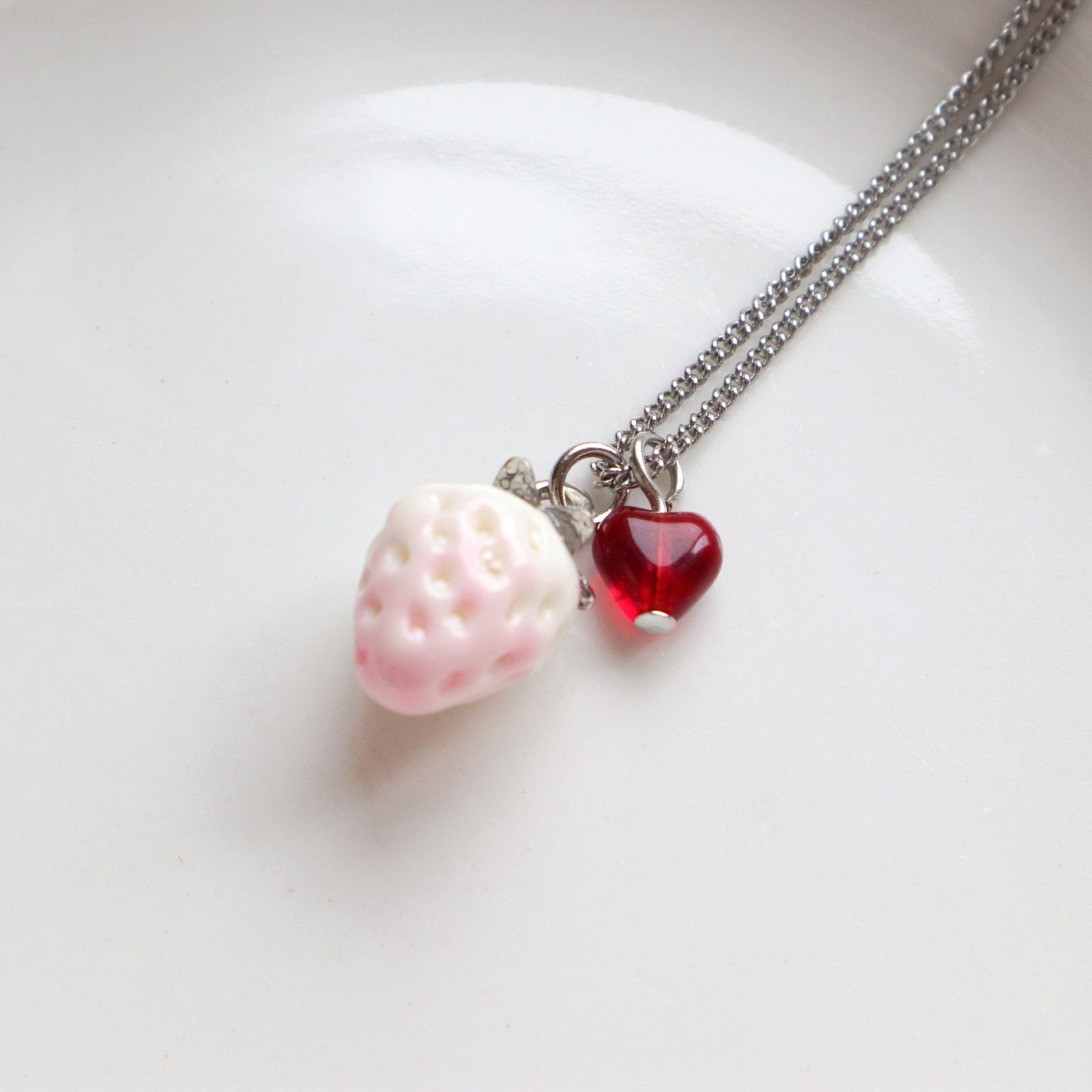 小さな恋する白苺のネックレス*チェコハート/シルバーカラー