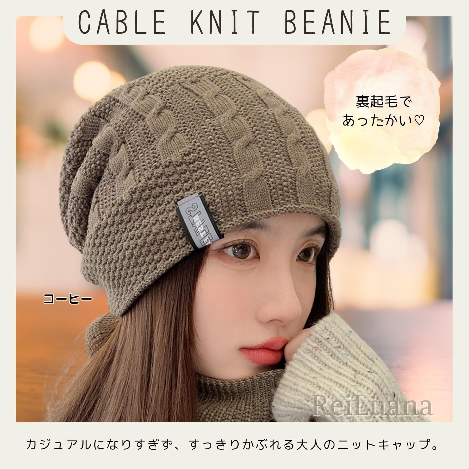 ケーブル編みで仕上げたニット帽は、ゆったりしたビーニーシルエットで“こなれ感”と小顔効果を両立しています。ネックウォーマーとセットで、頭から首まですっぽり包み込む“あったかスタイル”が完成。外側の編み目がアクセントになり、無地ながら存在感あり。男女兼用デザインで、レディース・メンズどちらにもおすすめです。【スタイル】