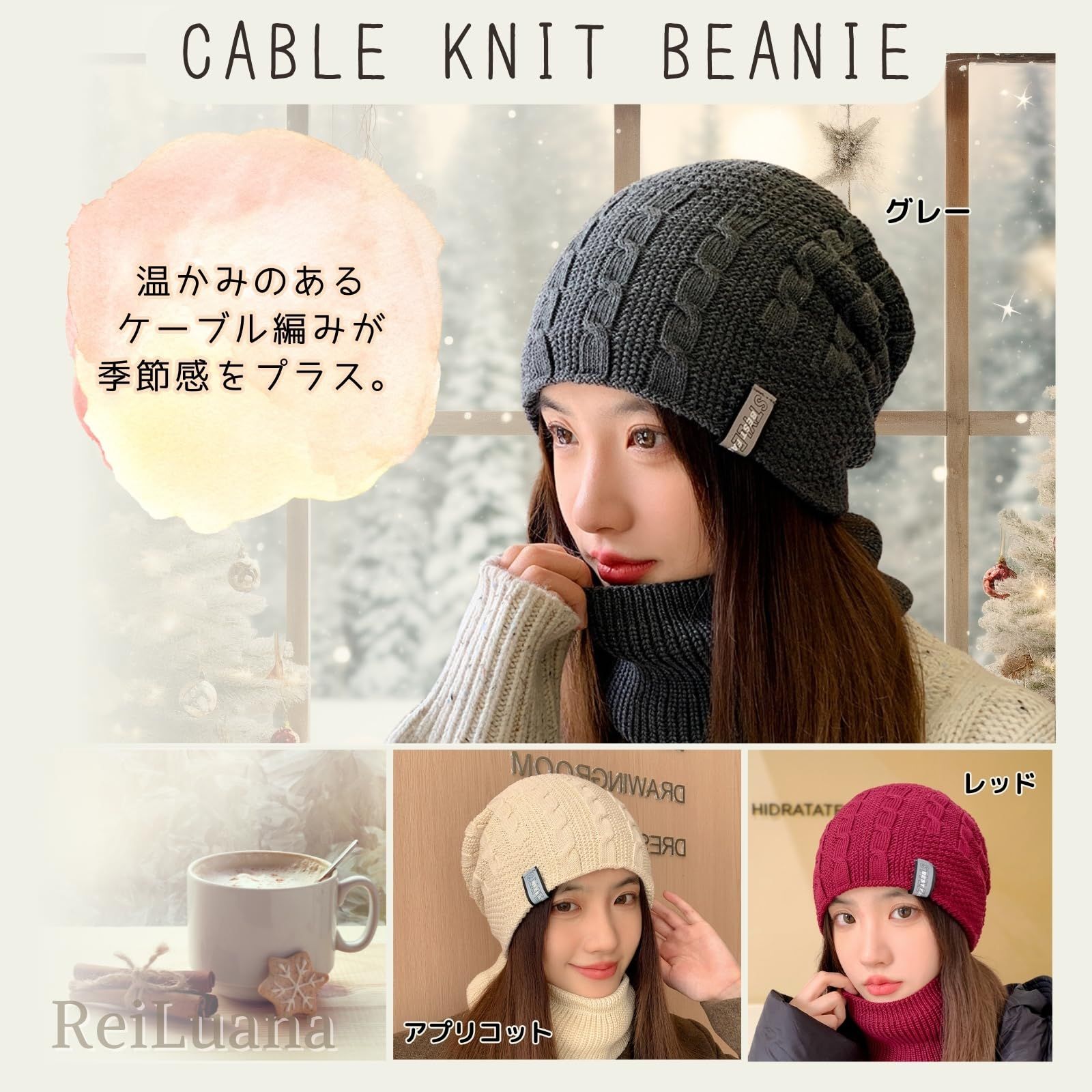 寒さが気になるこの季節にぴったりの、ケーブル編みニット帽&ネックウォーマー2点セットをご紹介します。ふんわり柔らかなニット素材を使用し、ビーニー帽はゆったりめのシルエットで小顔効果も期待できます。さらにネックウォーマーは内側に裏起毛(ボア仕様)を採用し、首元の冷え・風の侵入をしっかりガード。頭から首まで一気にあたたかく、通勤・通学・アウトドア・バイク・自転車まで幅広く活躍します。無地5色(アプリコット・コーヒー・グレー・レッド・ブラック)展開なので、毎日のコーデに合わせやすくギフトにもおすすめ。防寒ニット帽&ネックウォーマーのセットで、この冬「可愛く、あったかく、安心」なスタイルを手に入れてください。【デザイン・シルエット】
