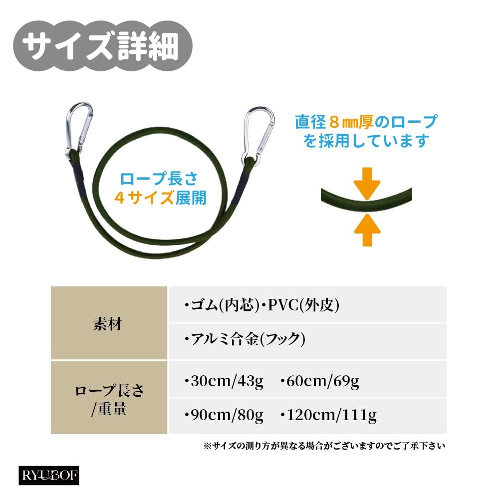 RYUBOF シェード 取り付け金具 セット 強力 フック ゴムバンド 荷台用 固定ベルト 荷締めベルト 伸縮性ロープ サンシェード オーニング ベランダ 日除け 屋外 キャンプ 防風 設営 アウトドア 多用途 耐荷重20kg (8個, [8個] [90cm]