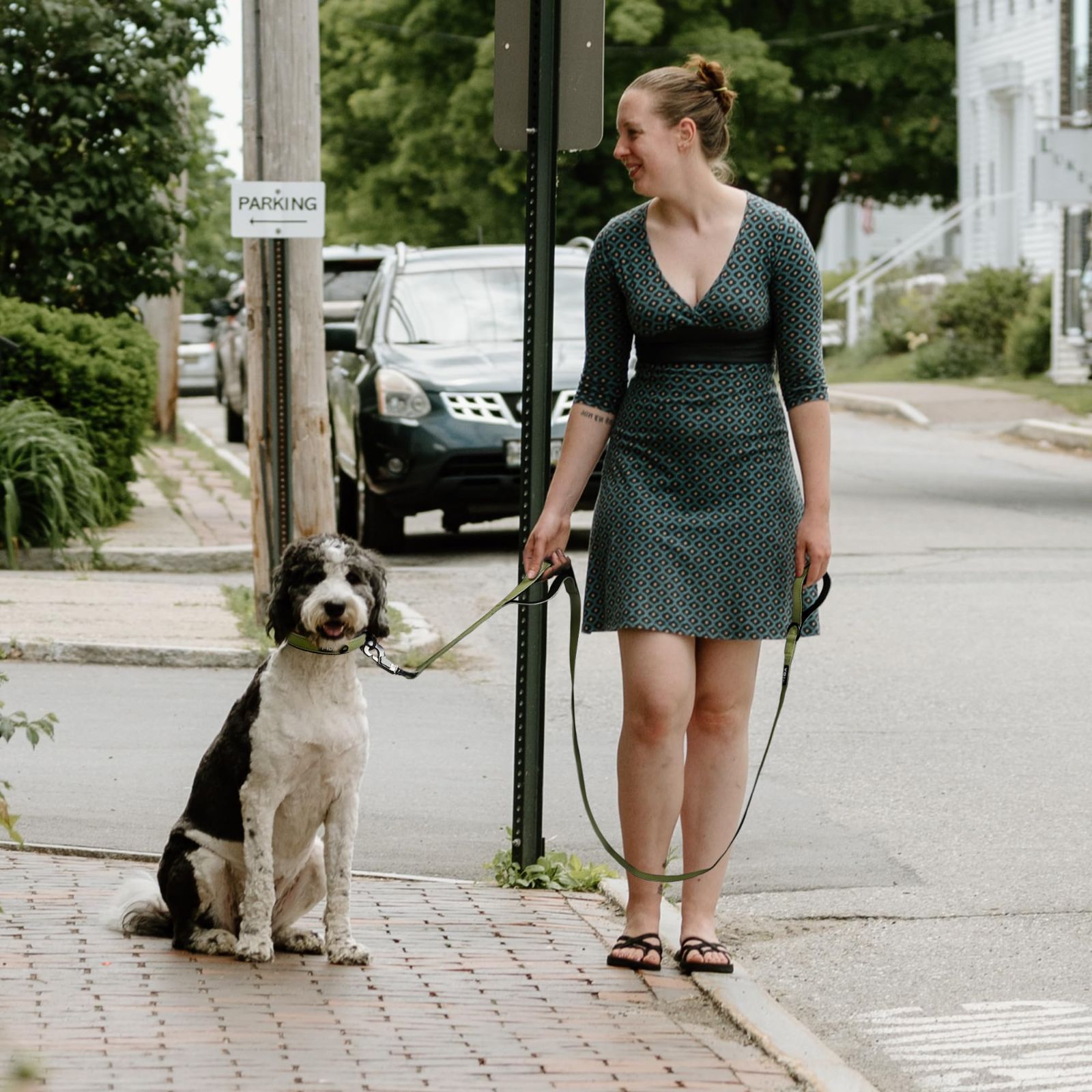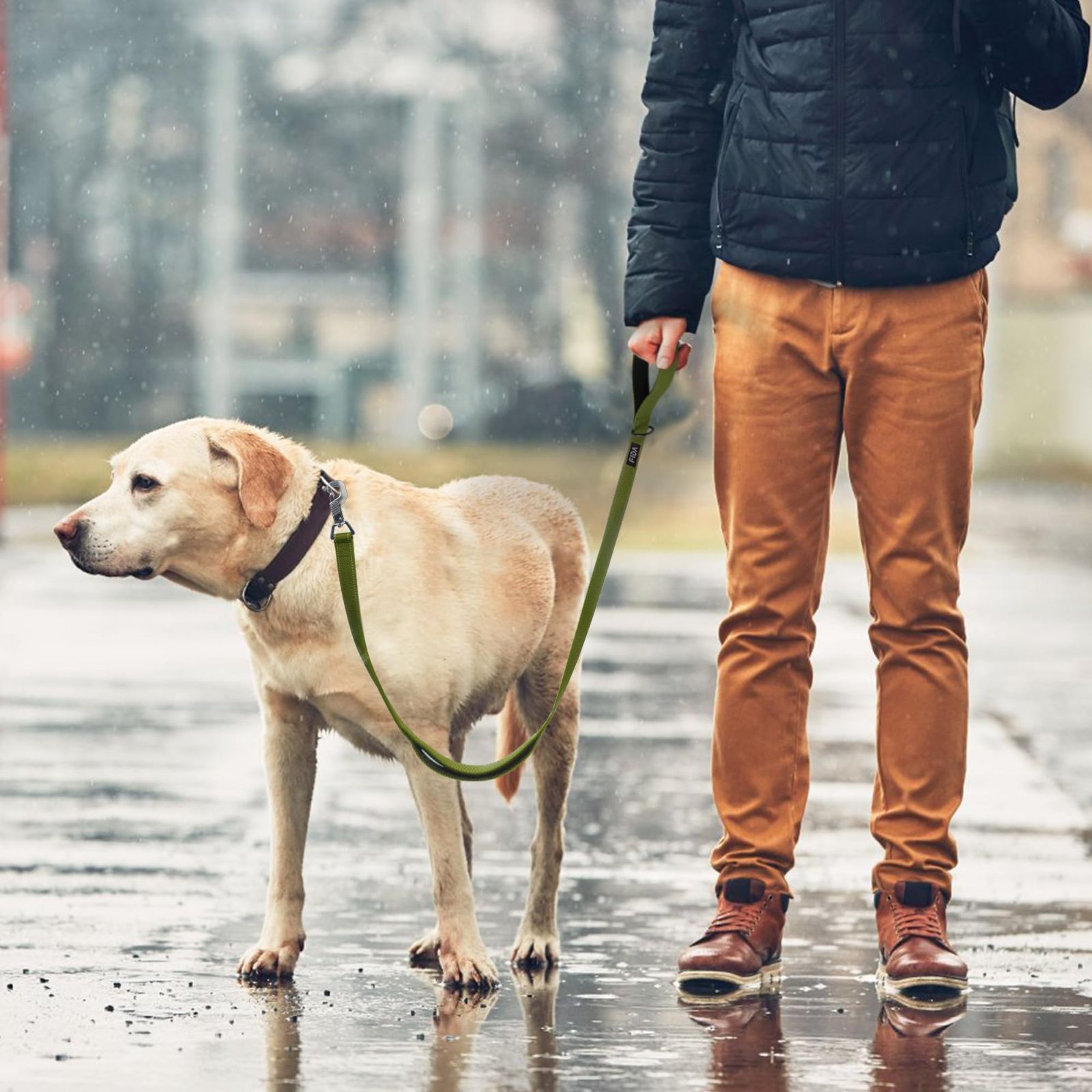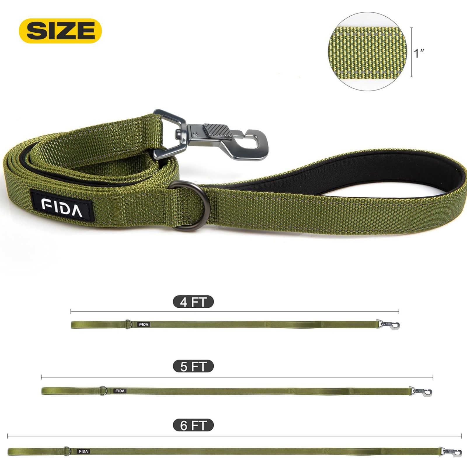 【在庫セール】犬用 ロングリード 持ち手2個 柔らかいパッド付き リード 小型犬 中型犬 大型犬 ペット用 Fida 訓練リード 夜間反射 (1.8m グリーン)