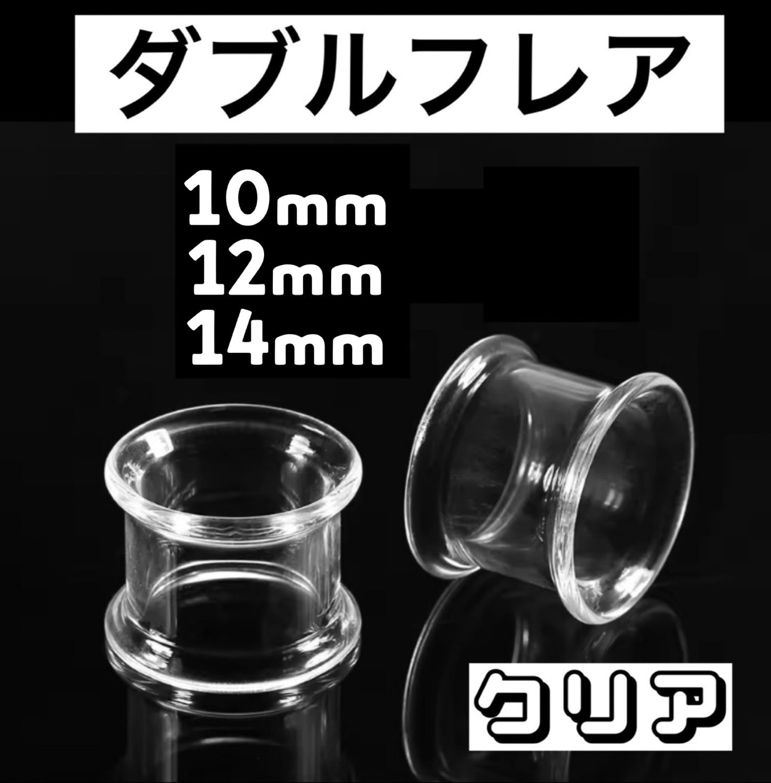 ボディピアス ダブルフレア トンネルピアス アクリル クリア 00G 10mm 12mm 14mm