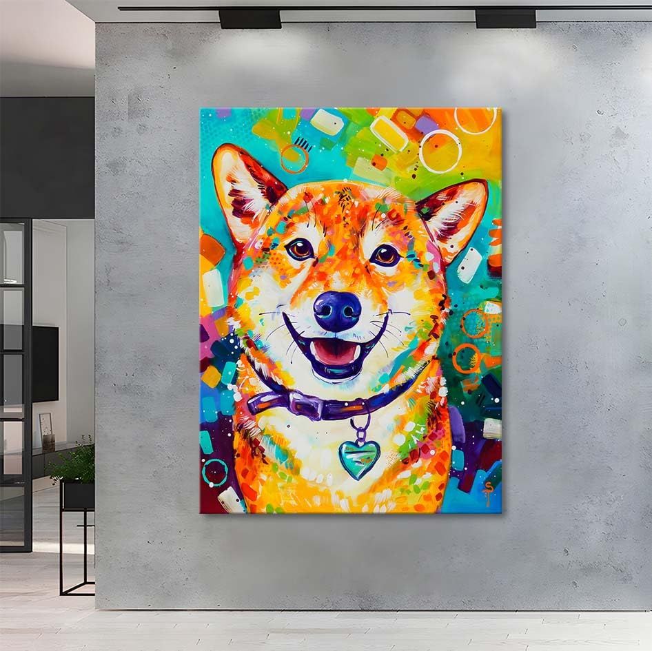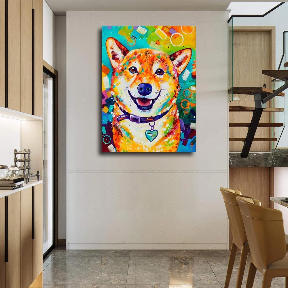 ★即日発送★アートパネル 犬 柴犬 動物 W30cm H40cm アートフレーム 絵画 キャンバス 額付き ウォールアート ポップアート モダンアート 壁掛け インテリア 装飾