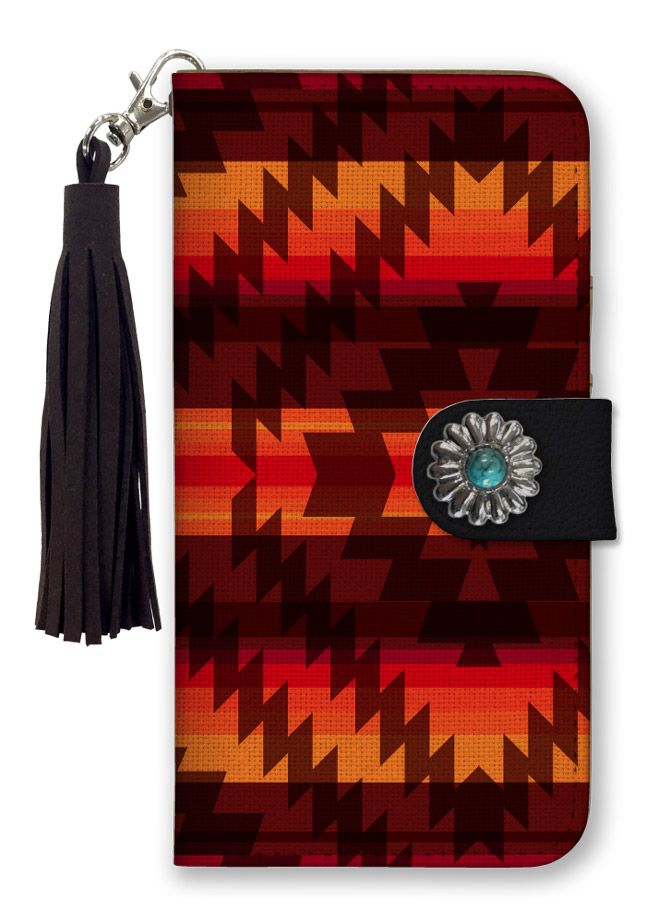 Galaxy S24 FE SCG30 ケース 手帳型 ギャラクシーS24 FE SCG30 スマホケース フリンジ ストラップ付 コンチョ ネイティブ オルテガ柄 西海岸 カジュアル ネイビー ホワイト メンズ 男性 カラー02
