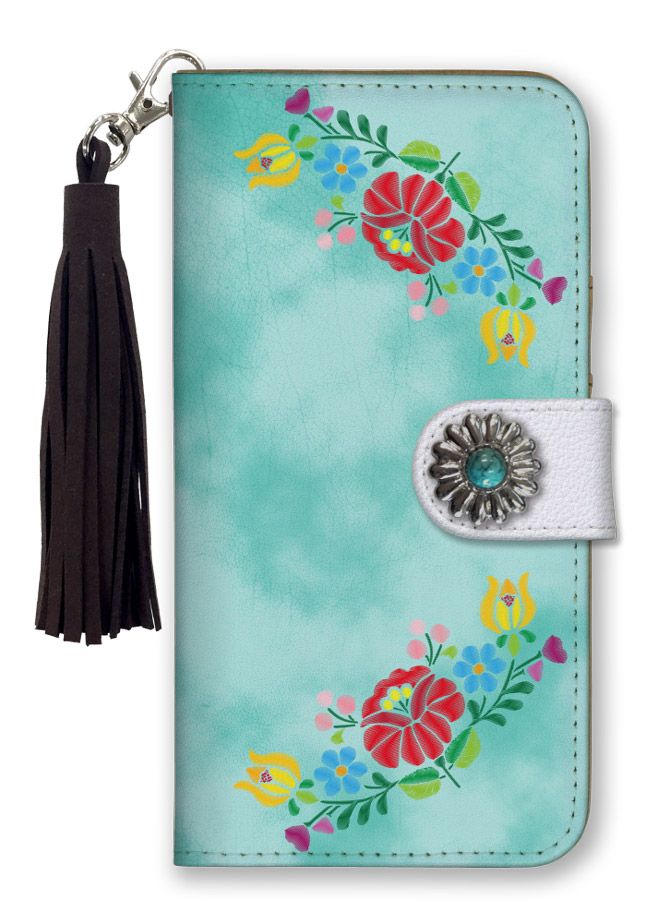 Xperia 5 V SO-53D SOG12 ケース 手帳型 エクスペリア 5 V SO-53D SOG12 スマホケース フリンジ ストラップ付 コンチョ 可愛い 花柄 フラワー 刺繍 プリント タッセル デニム柄 ピンク イエロー カラー05