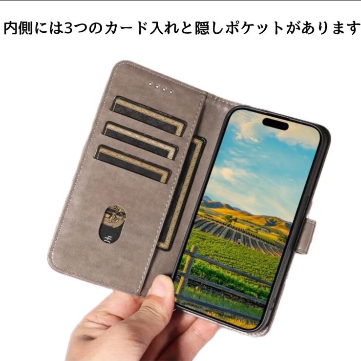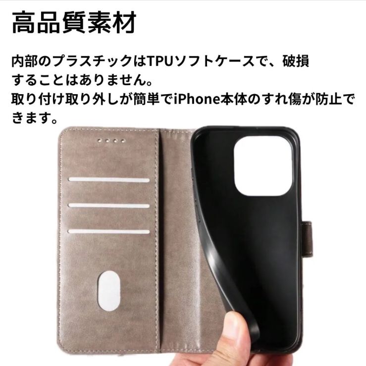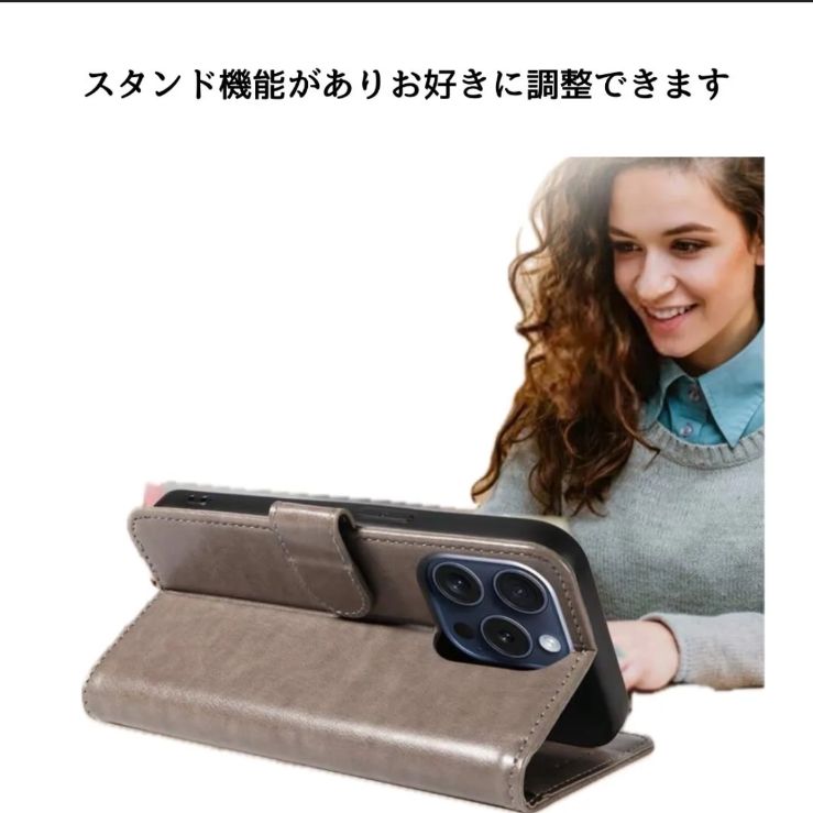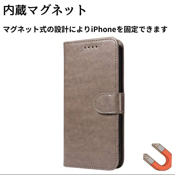 iPhone13 iPhone14 iPhone15 ケース 手帳型 グレー ブラウン カード収納 横向きスタンド機能 高級PU合皮 便利なマグネット式 耐衝撃 人気 アイフォン13 アイフォン14 アイフォン15 スマホケース b10
