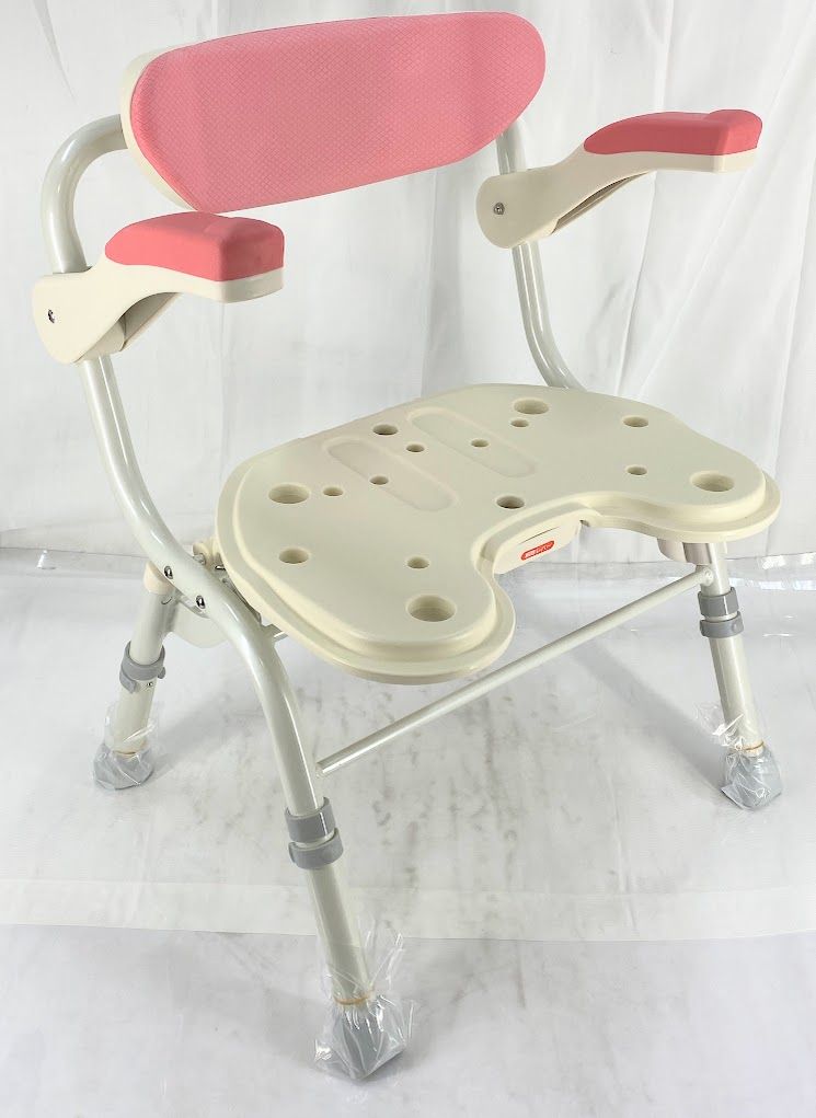 【極美品】 リッチェル 折りたたみシャワーチェア U型 肘掛付 ピンク 48081