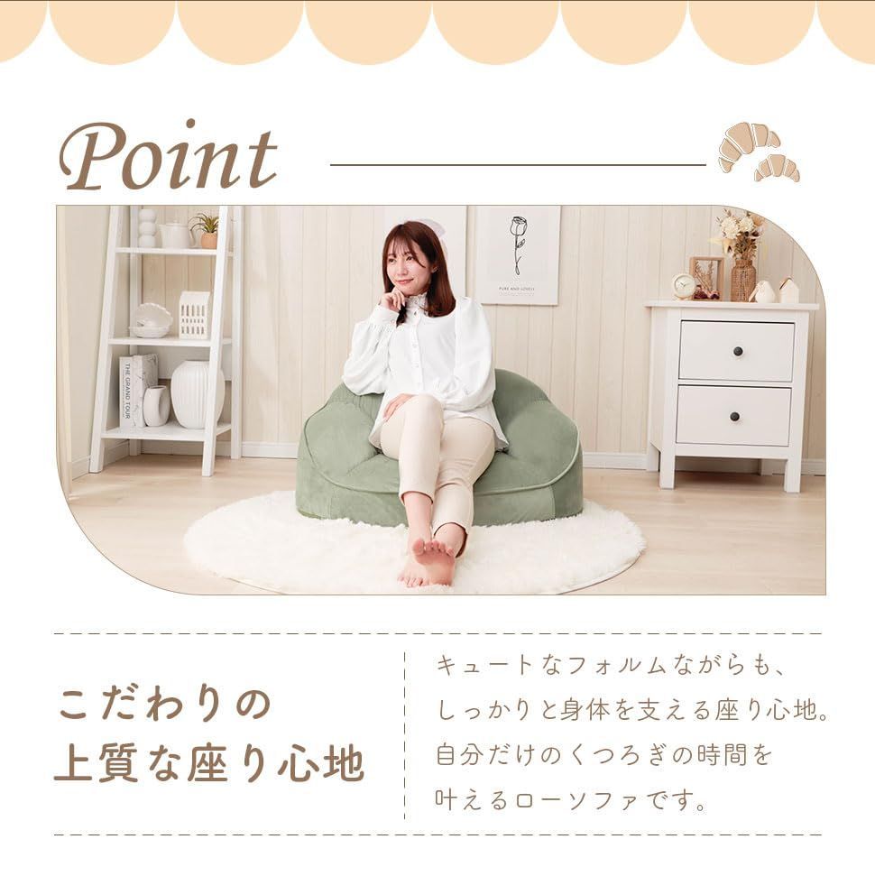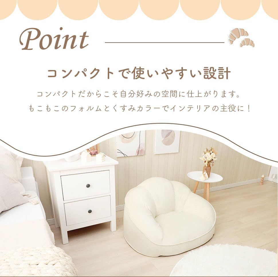 『大特価』 セルタン フロアソファー ベロア生地 パールホワイト 1人掛け クロワッサン コンパクト 日本製 A298a-a-718IV