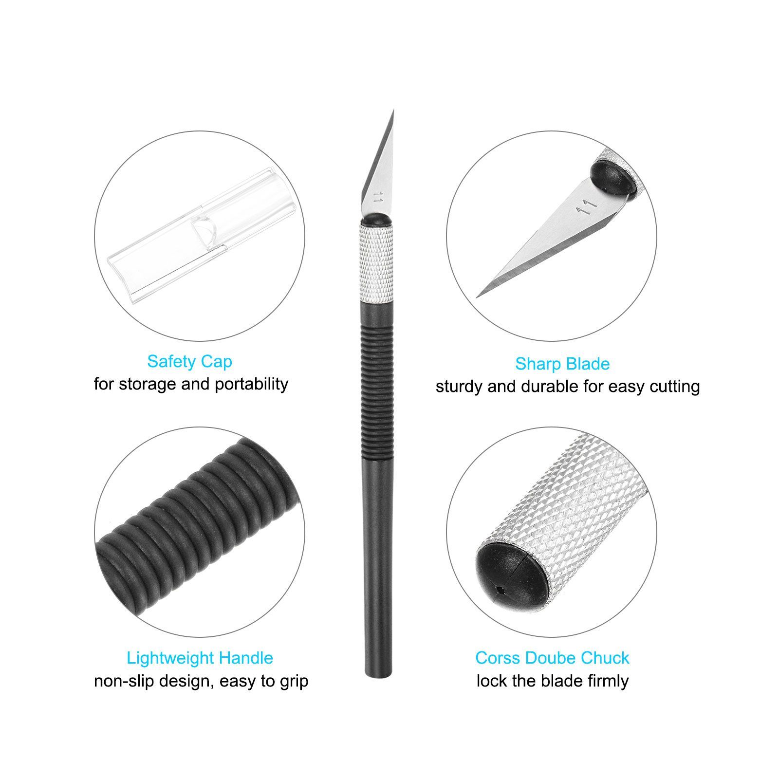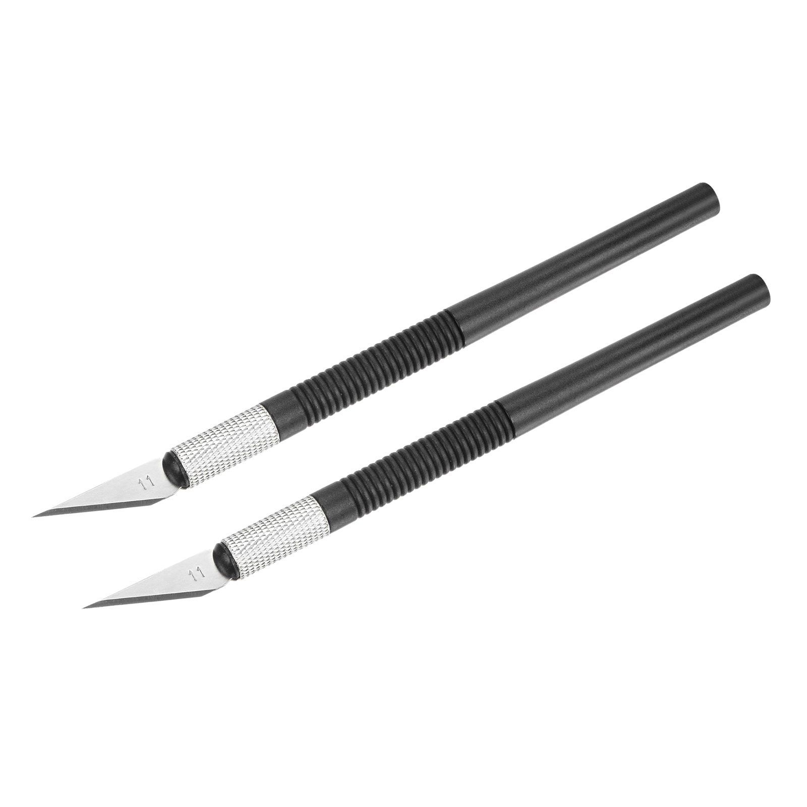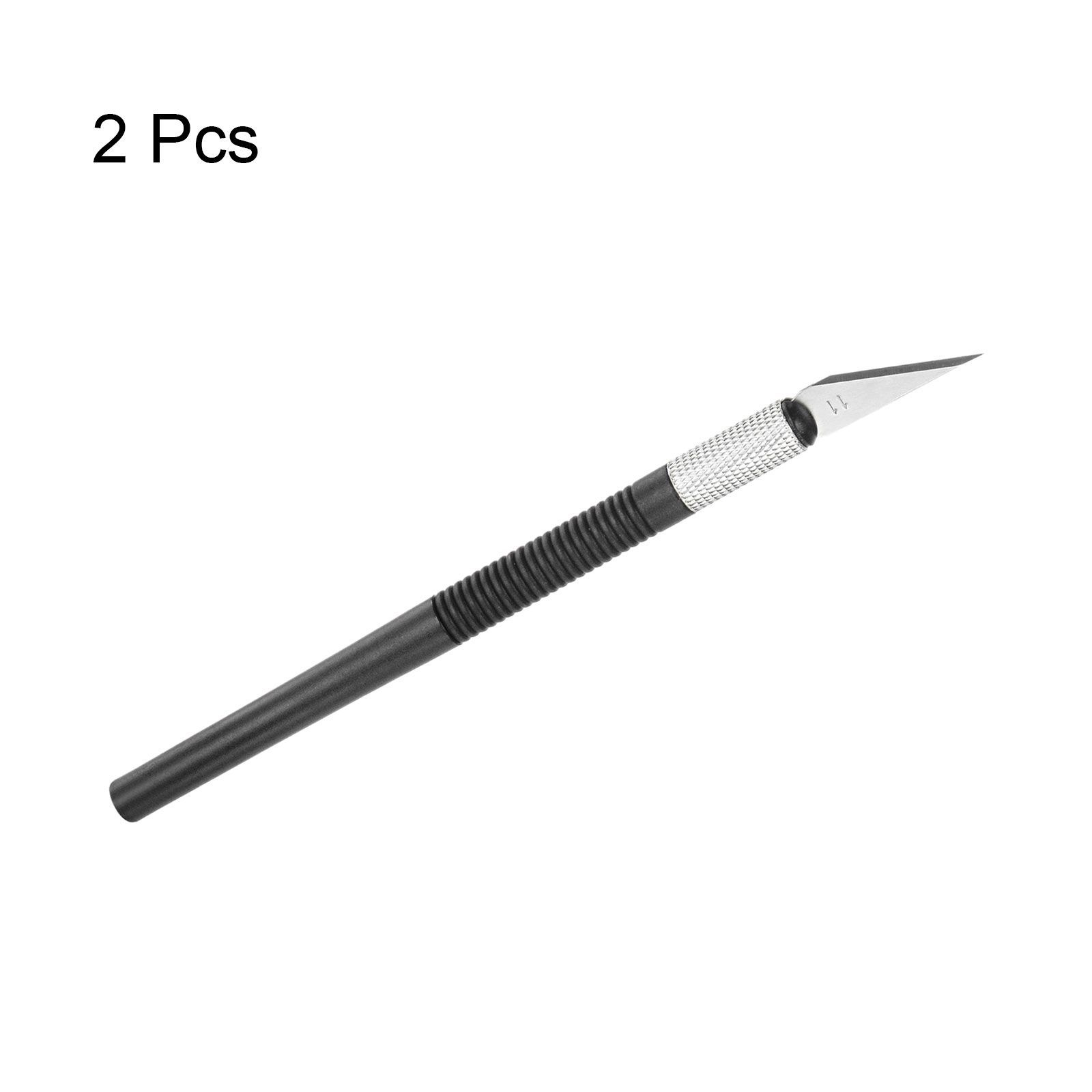 uxcell アートクラフトナイフセット 彫刻刀2本とSK5 合金工具鋼刃2枚付き スクラップブッキング ステンシル趣味 DIY用 PVCハンドル ブラック (2セット入り)