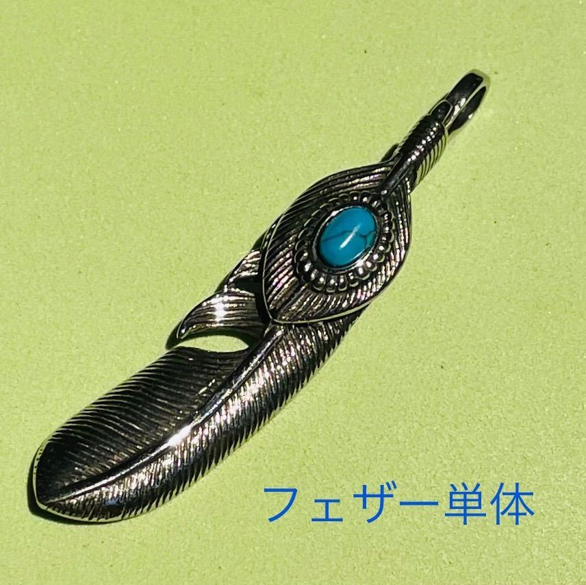 ターコイズ・銀縄先端右向・フェザーペンダントトップ単体(燻加工)