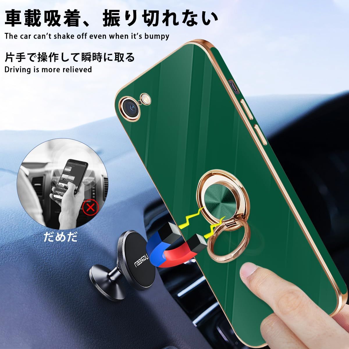 新品 iPhone SE ケース iPhone第3世代 ケース iPhone第2世代 ケース iPhone8/7 ケース リング 耐衝撃 360°回転 スタンド機能 車載ホルダー対応 アイフォン SE3/SE2 ケース 一体型 携帯ケース 保護カバー レンズ保