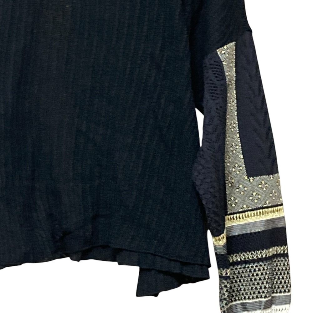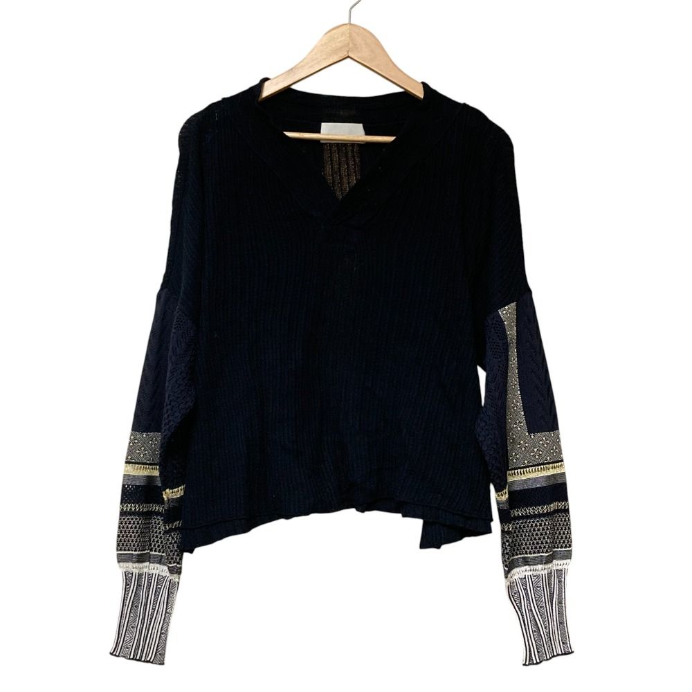 美品 Mame Kurogouchi マメクロゴウチ Sash Jacquard Knit Pullover ニット セーター MM19SS-KN025 サイズ2 ダークネイビー レディース 古着 中古 USED