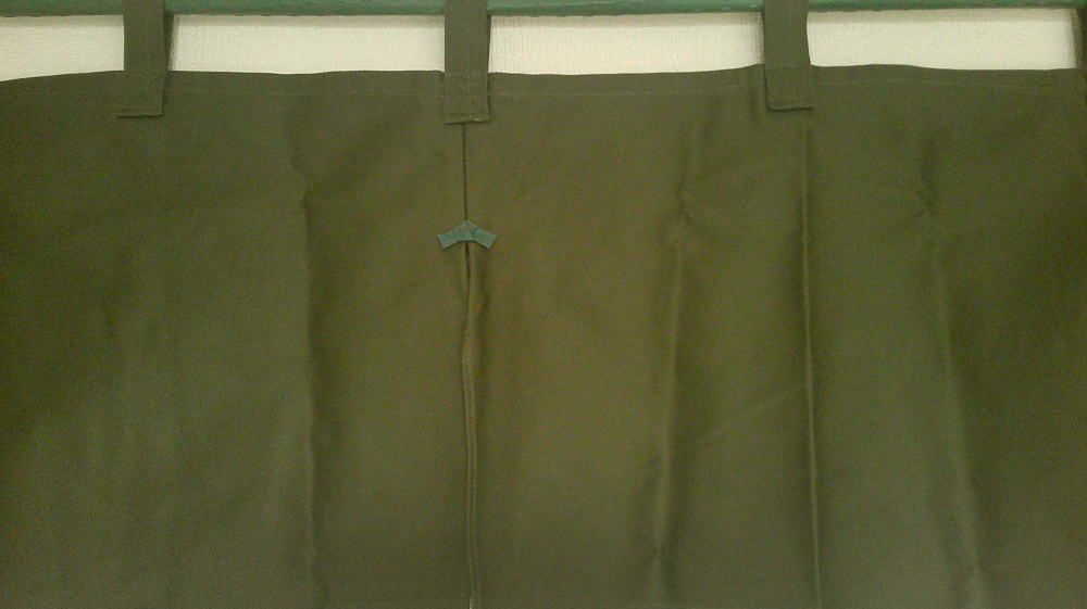 厚手 綿のれん幅175cm×丈30cmカウンターのれんアウトレットカツラギ(共チチ11個付き)モスグリーン21987cos訳あり商品