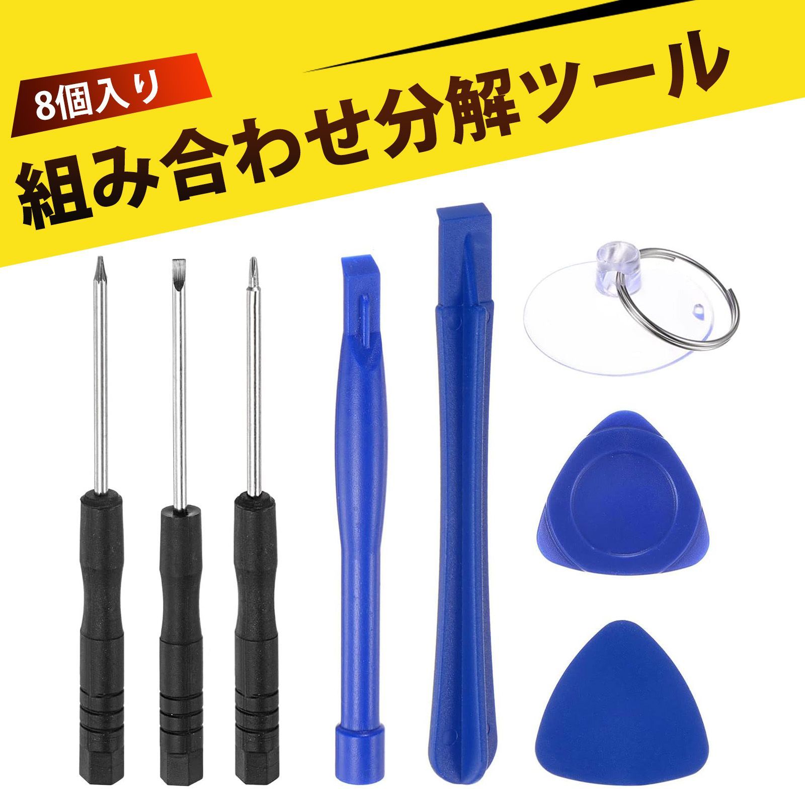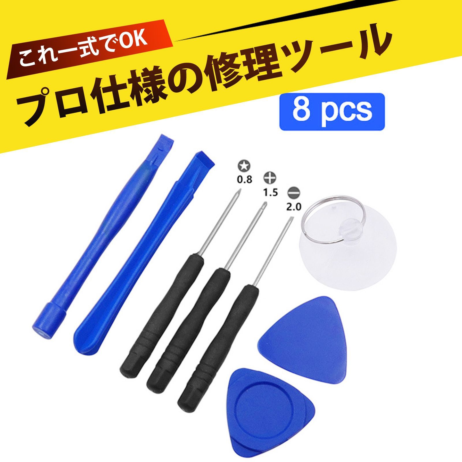 【8個入り】修理用ツールキット 星型ドライバー 精密ドライバーセット (星型・十字・一字) + オープナー2個 + スクレーパー2個 + 吸盤1個|iPhone バッテリー交換 画面修理 DIY 工具 スマホ分解 ガジェットメンテナンス