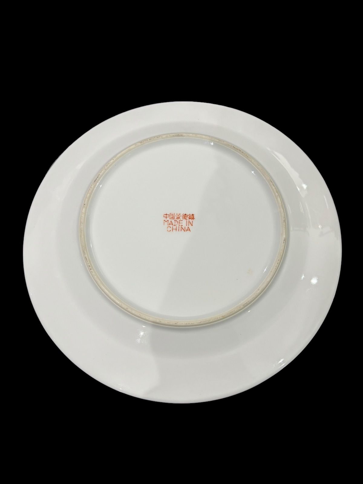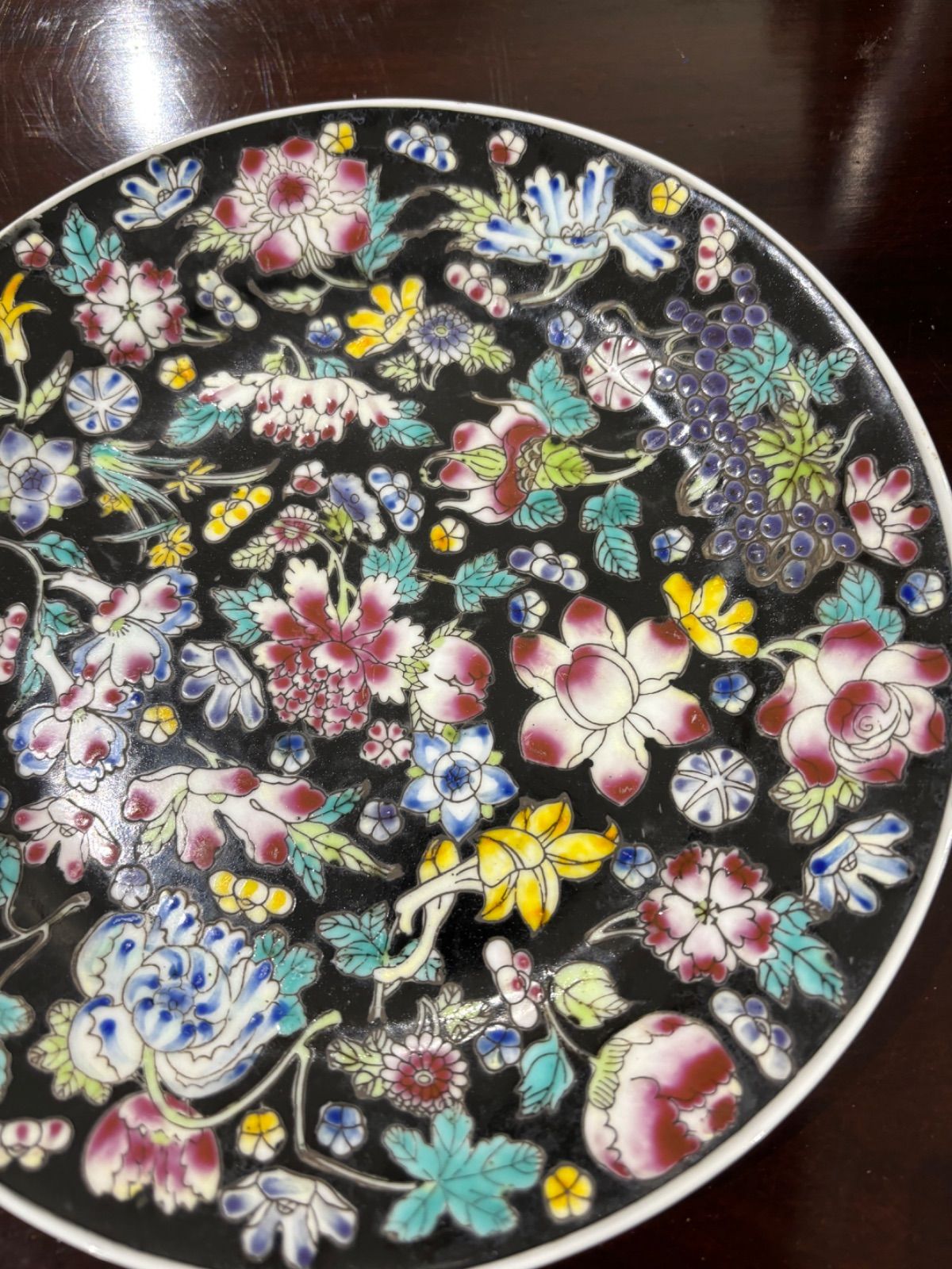 中国美術 唐物 丸皿 大皿 景徳鎮 粉彩洋蓮 シノワズリ 黒 中皿 中国食器 手作り 中国 景徳鎮