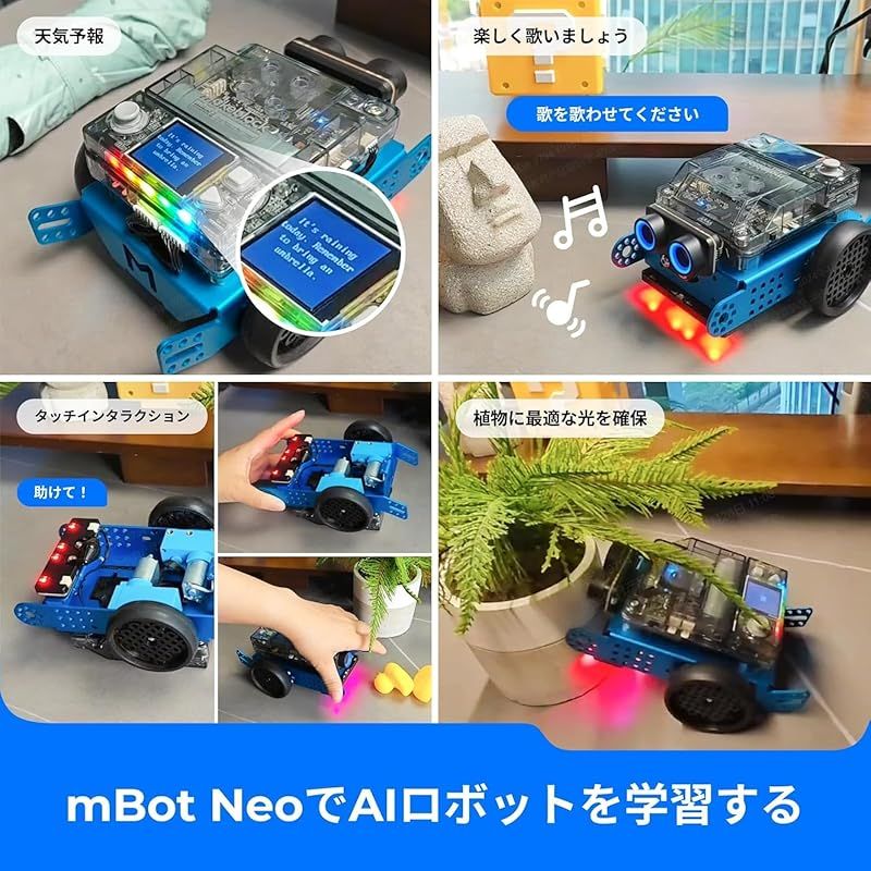 【遊びを通じてAIを学ぶ】mBot2プログラミングロボットは、天気を尋ねたり、歌わせたり、ライトを変えて動かしたり、ひっくり返して怒らせたりすることができます!mBot2は100%プログラム可能で、8歳から12歳の子供向けに設計されています。無限の楽しいAIゲームが探索できます。(英語コーディングガイドが含まれています)