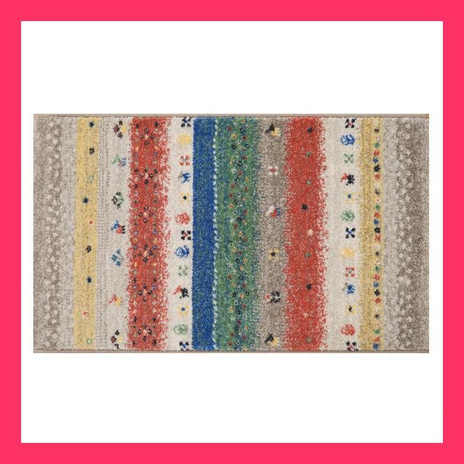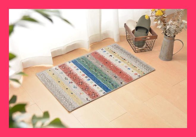 【ギャッベ風デザイン】ウィルトン織 玄関マット 屋内 ベルギー製 「レーヴ」 グ 約50×80cm 動物、植物、人などのモチーフがカラフル おすすめ おしゃれ ★売れ筋★ 大人気 8292414