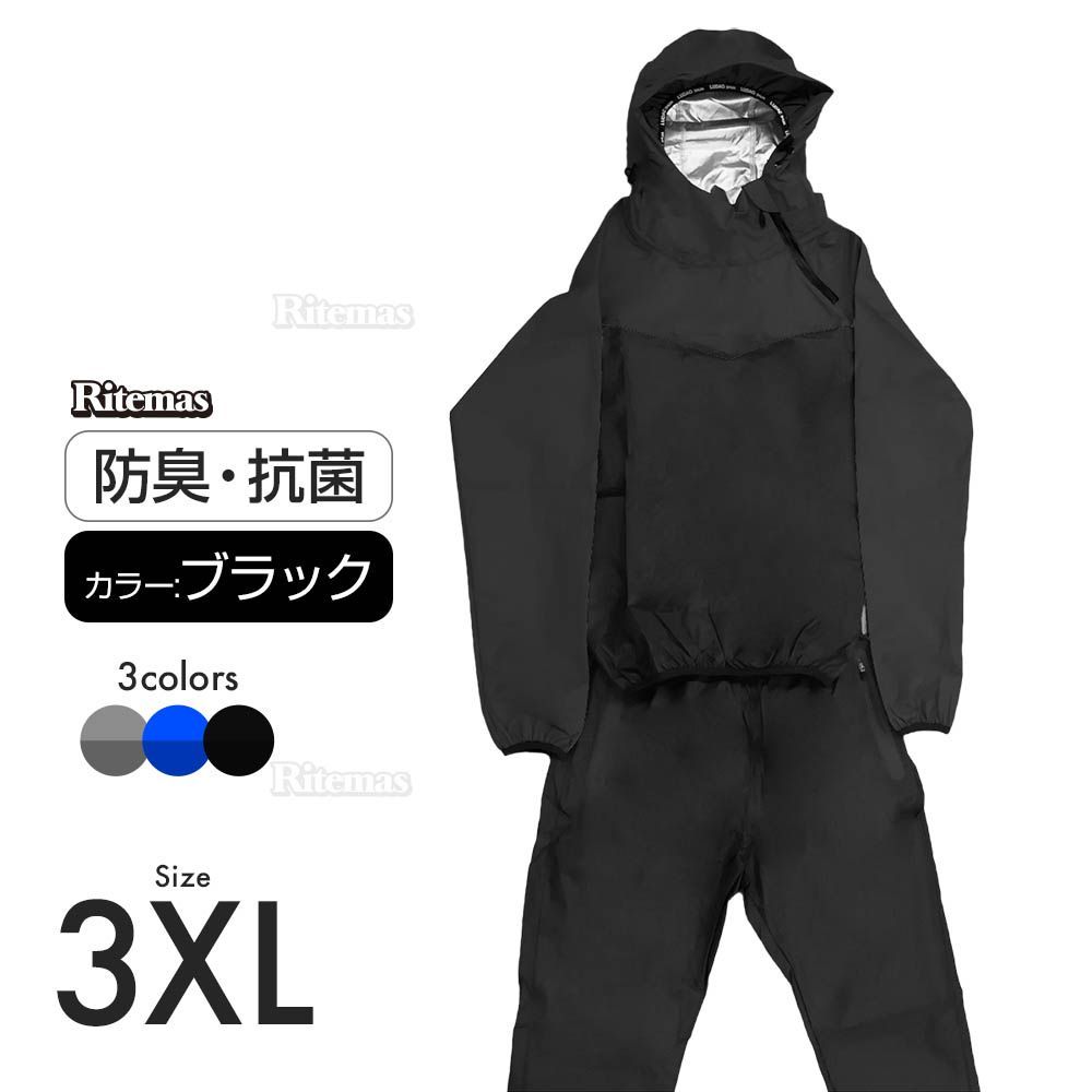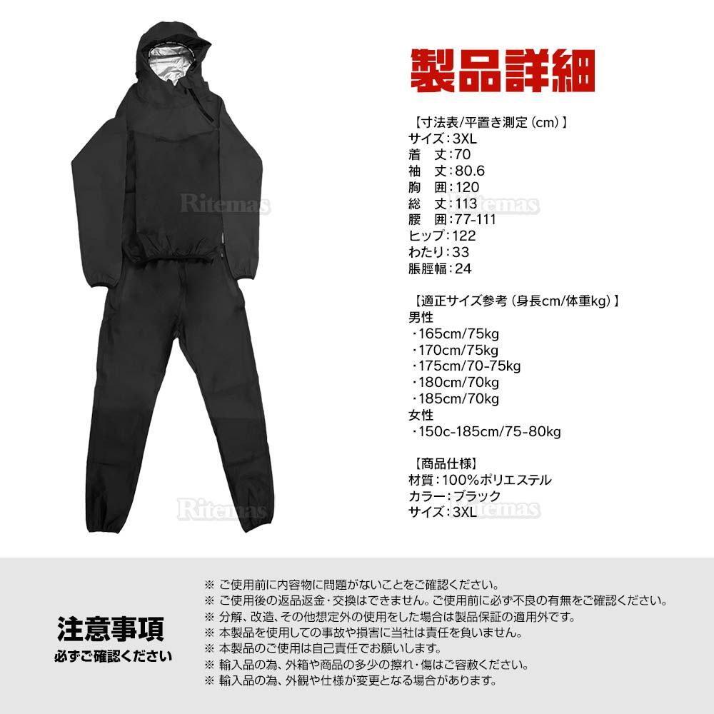 サウナスーツ ブラック 3XL メンズ レディース 男女兼用 スポーツ ウォーキング エクササイズ トレーニングウェア 脂肪燃焼