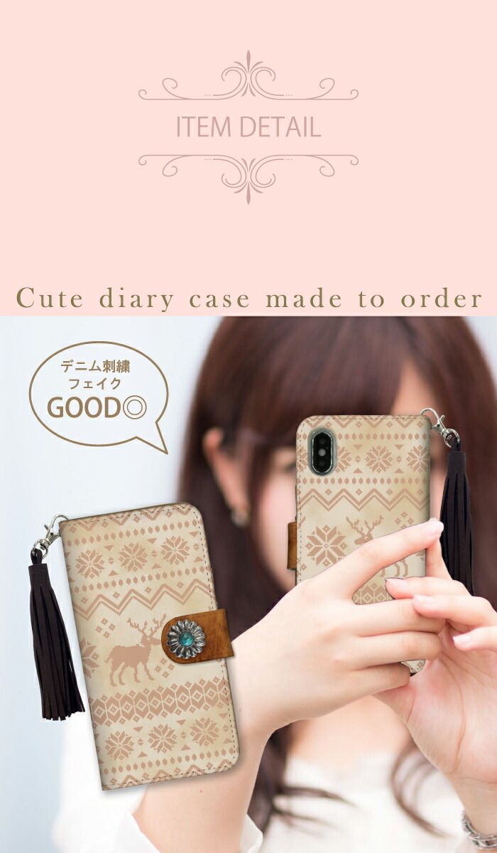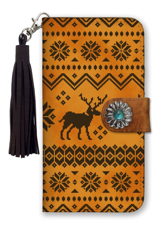 Galaxy S24 FE SCG30 ケース 手帳型 ギャラクシーS24 FE SCG30 スマホケース フリンジ ストラップ付 コンチョ ノルディック柄 フェアアイル トナカイ かわいい オレンジ ピンク ネイビー カラー06