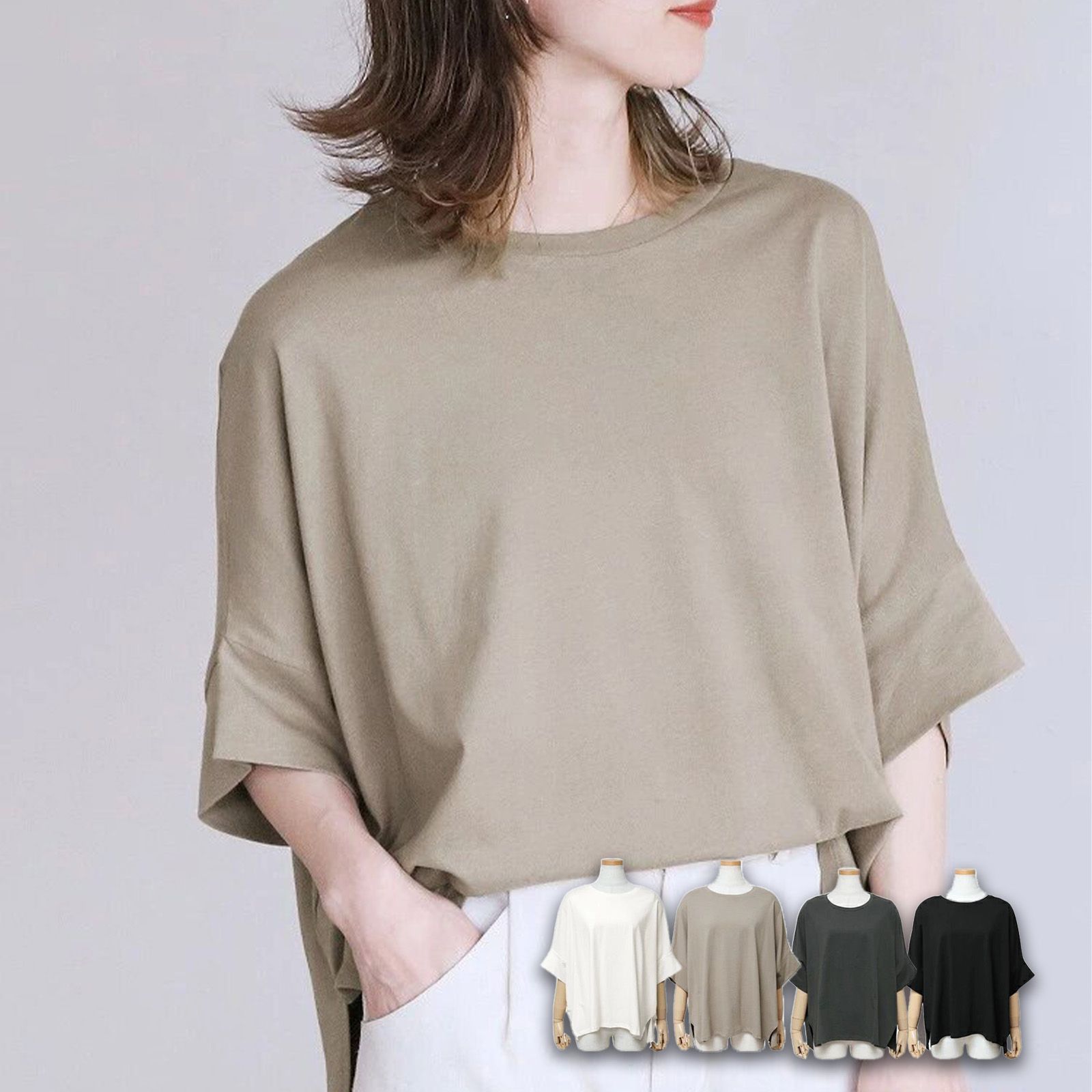Tシャツ レディース tシャツ トップス カットソー 5分袖 半袖 ドルマン スリット 無地 ベーシック お洒落 綺麗め 可愛い ゆったり ⚫︎beige⚫︎ /全国送料無料/ /在庫少量/ /追跡で安心お届け/ ♣