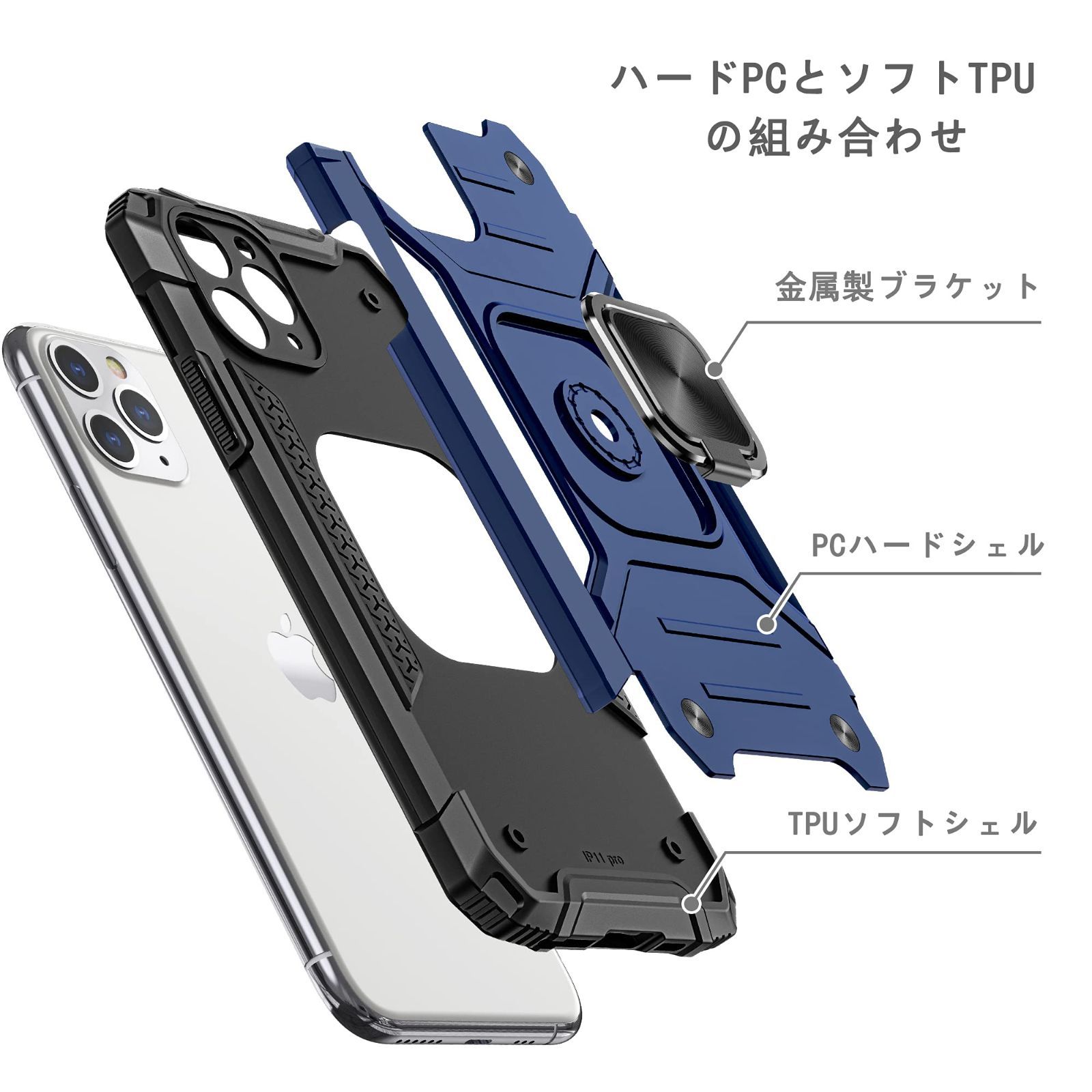 JSCOMYAP iPhone 11 Pro Max 用 ケース iPhone11pro Maxスマホケース + 11promax 化 ガラス フィルム リング スタンド機能 付き 携帯ケース 耐衝撃 横置き機能 Case Cover アイフォン11 いph