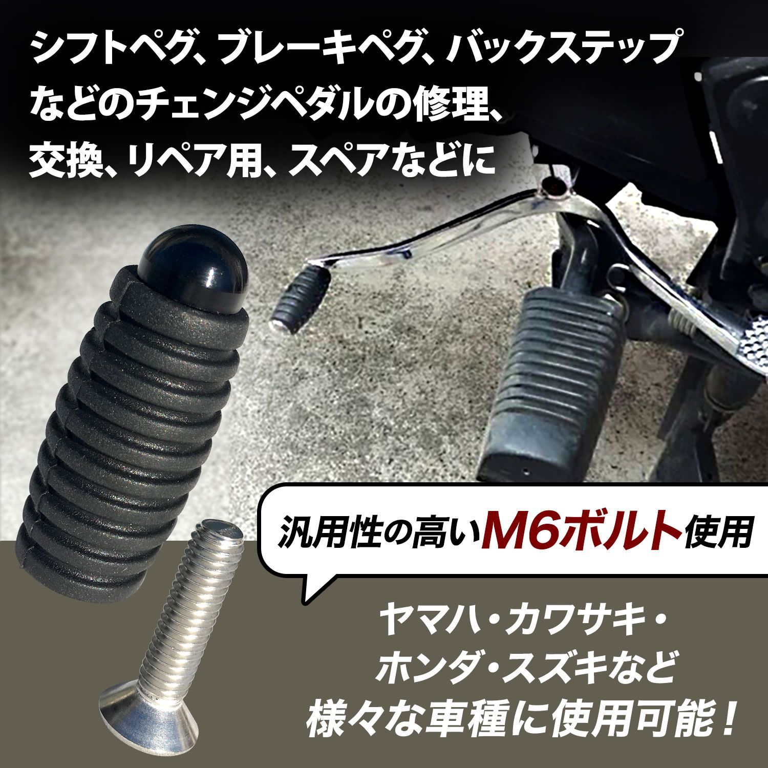 バイク 用 シフト フット ブレーキ ペグ チェンジ ペダル 1個 (選べる2色) ブラック シルバー M6 兼用 ステップ バー 汎用 ゴム パーツ 修理 リペア 補修 交換 バック ステップ オートバイ レバー ゴム ラバー メンテ メンテナンス カスタム
