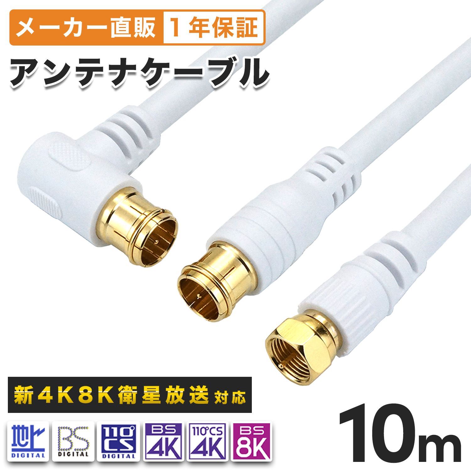 アンテナケーブル 10m 地デジ BS CS 4K8K 対応 S-4C-FB規格 ホワイト/ブラック 同軸ケーブル アンテナ線 アンテナコード テレビケーブル テレビ線 テレビコード レコーダー ホーリック HORIC(1本)