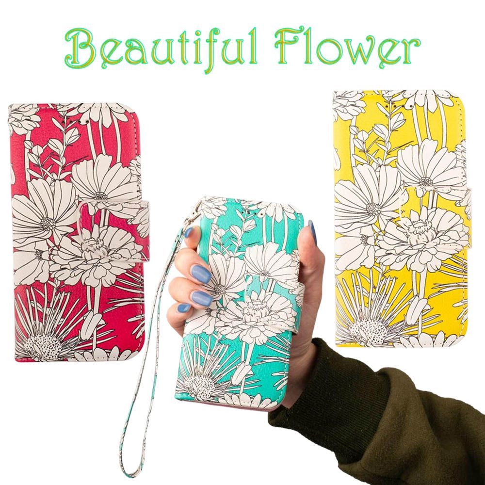 Xperia XZs ケース 手帳型 XZ カバー SO03J SOV35 602SO スマホケース SO01J SOV34 601SO ミラー ストラップ カバー 花柄 緑 グリーン 赤 レッド 黄 イエロー 送料無料