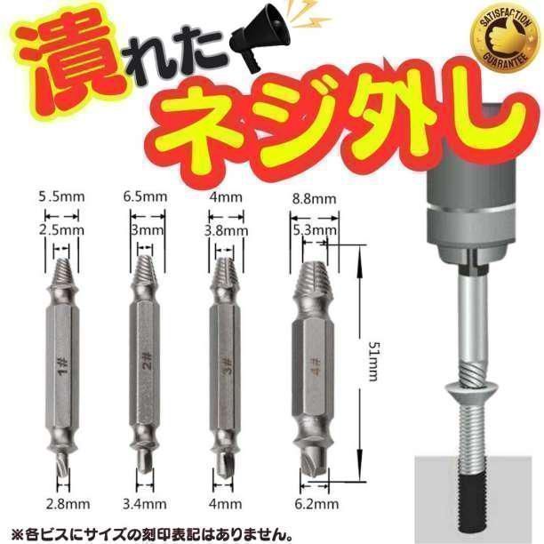 なめたネジ外し ビットネジバカビス工具ドリルネジ外し 逆タップ エキストラクター ネジ外しビット なめた 壊れた 4本セット なめたネジ外し ビット ネジバカ ビス つぶれた 工具 ドリル ソケット アダプター インパクトレンチ アダプタ R23-A909