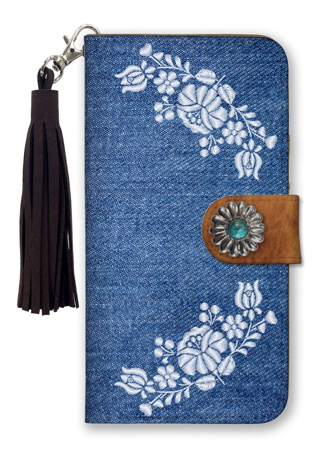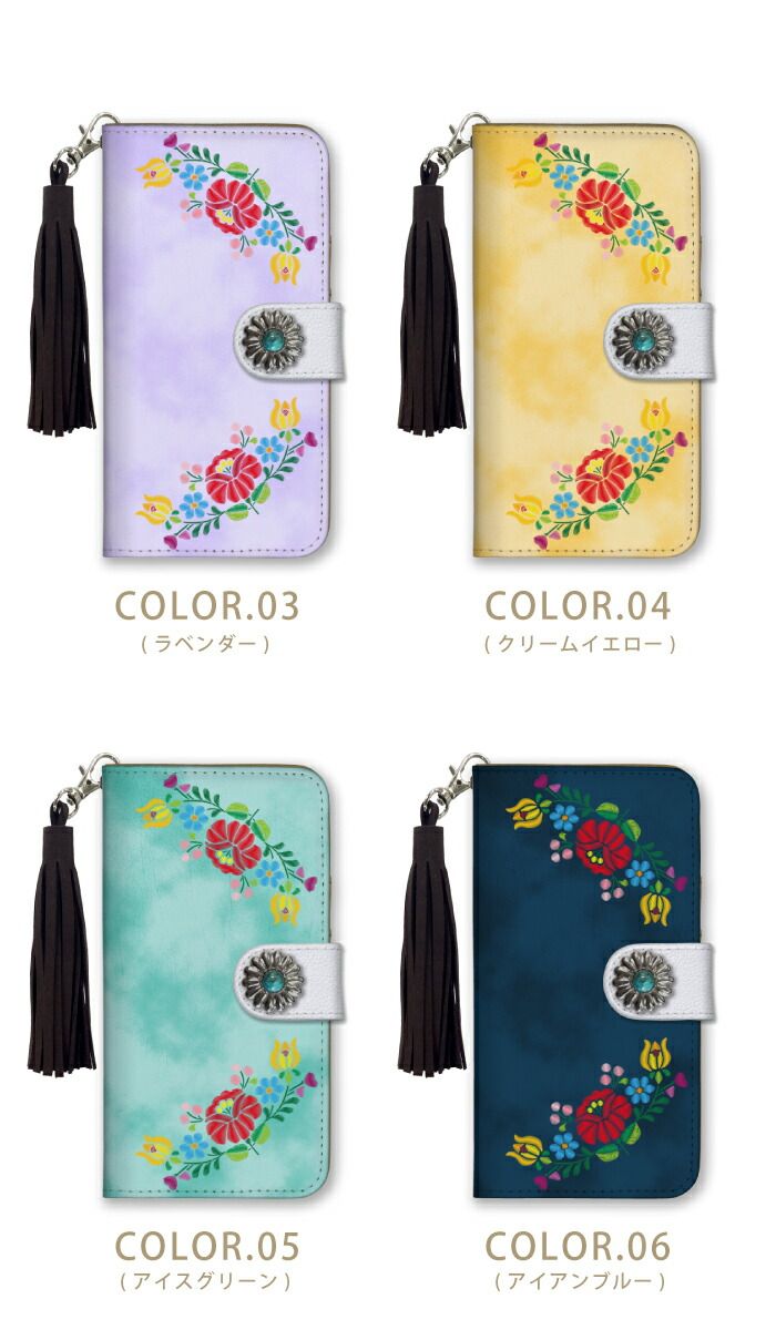 Xperia 5 V SO-53D SOG12 ケース 手帳型 エクスペリア 5 V SO-53D SOG12 スマホケース フリンジ ストラップ付 コンチョ 可愛い 花柄 フラワー 刺繍 プリント タッセル デニム柄 ピンク イエロー カラー08