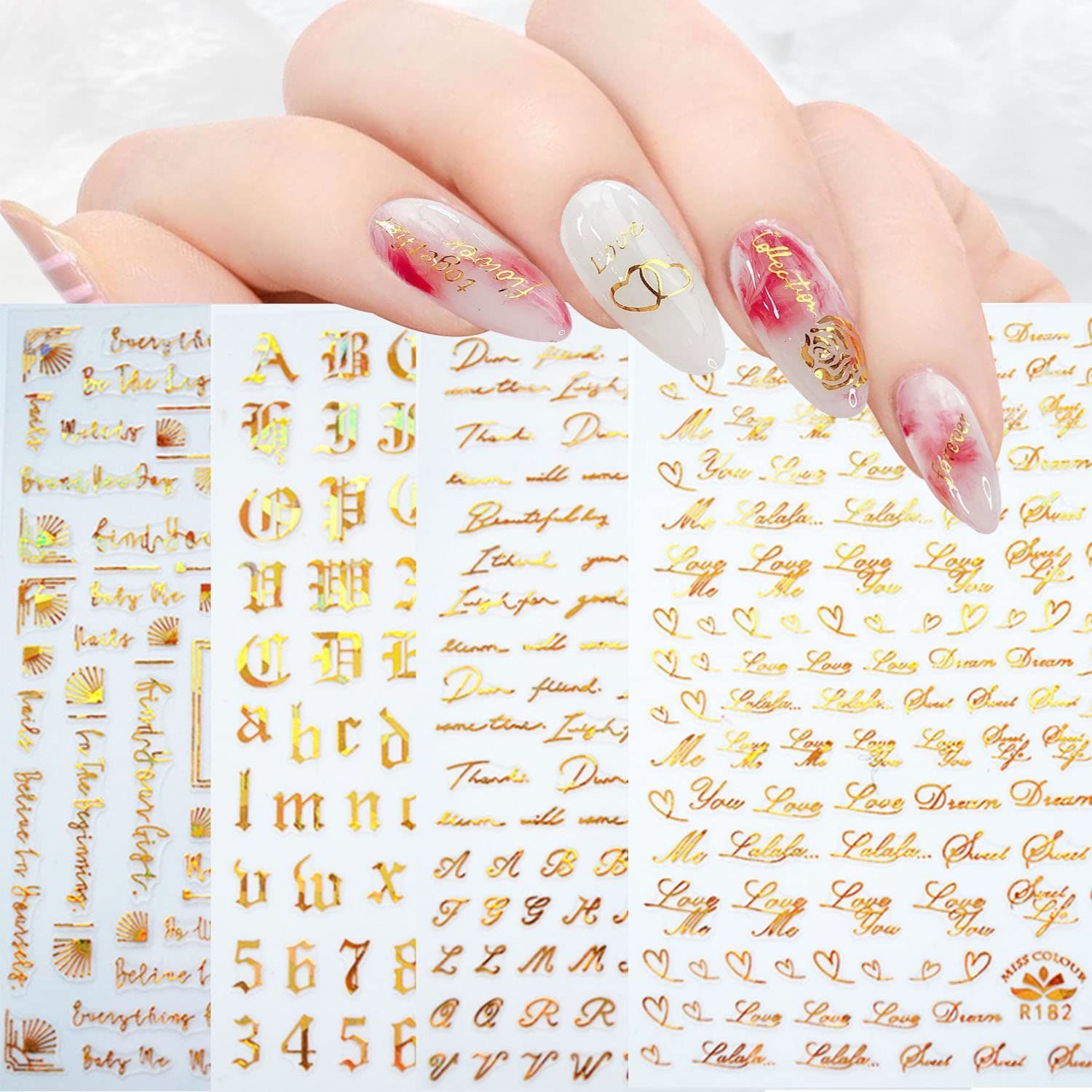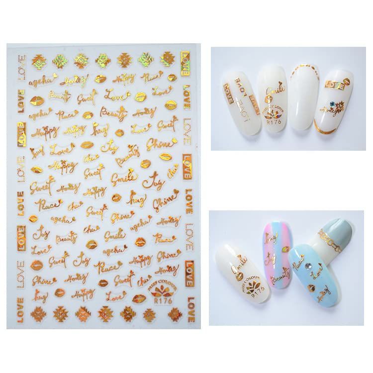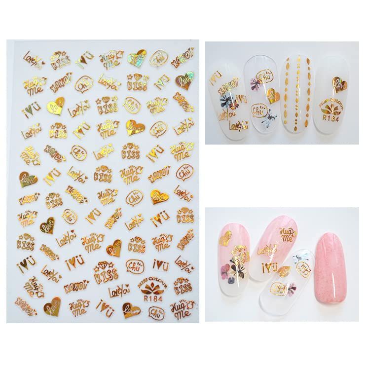【数量限定】アルファベット 3D ネイルシール 英字 英語 レーザ金 12枚 アルファベット 綺麗です ネイルステッカー LANODO DIY (0949)