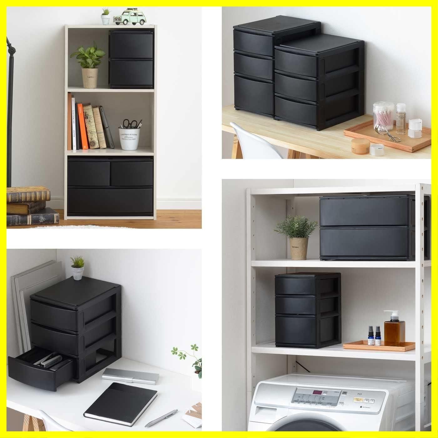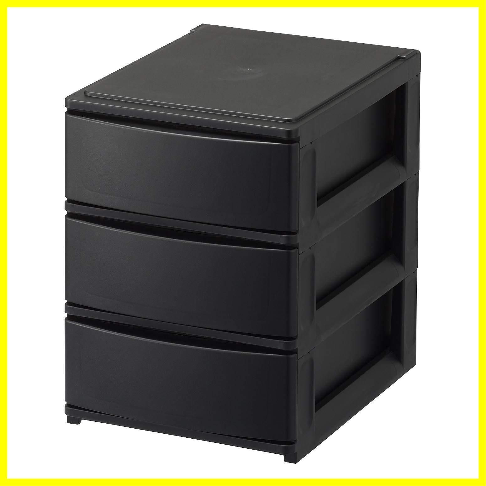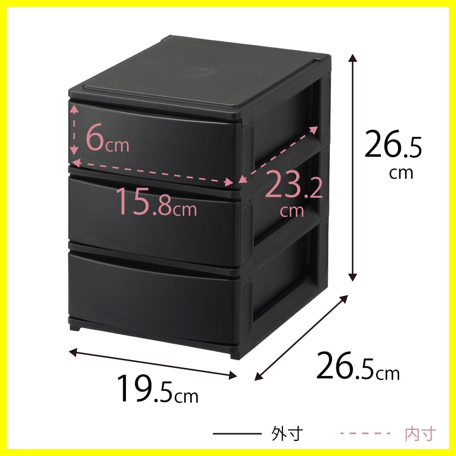 【最短発送】引き出し収納ボックス ハーフ 浅3段 ブラック カラーボックスにピッタリフィット ずれを防ぐラバーストッパー 重ねて使える スタッキングチェスト ポスデコ ロック機構 日本製 収納ケース 小物 サンカ 衣装 (幅19.5x奥行26.5x高さ26.5