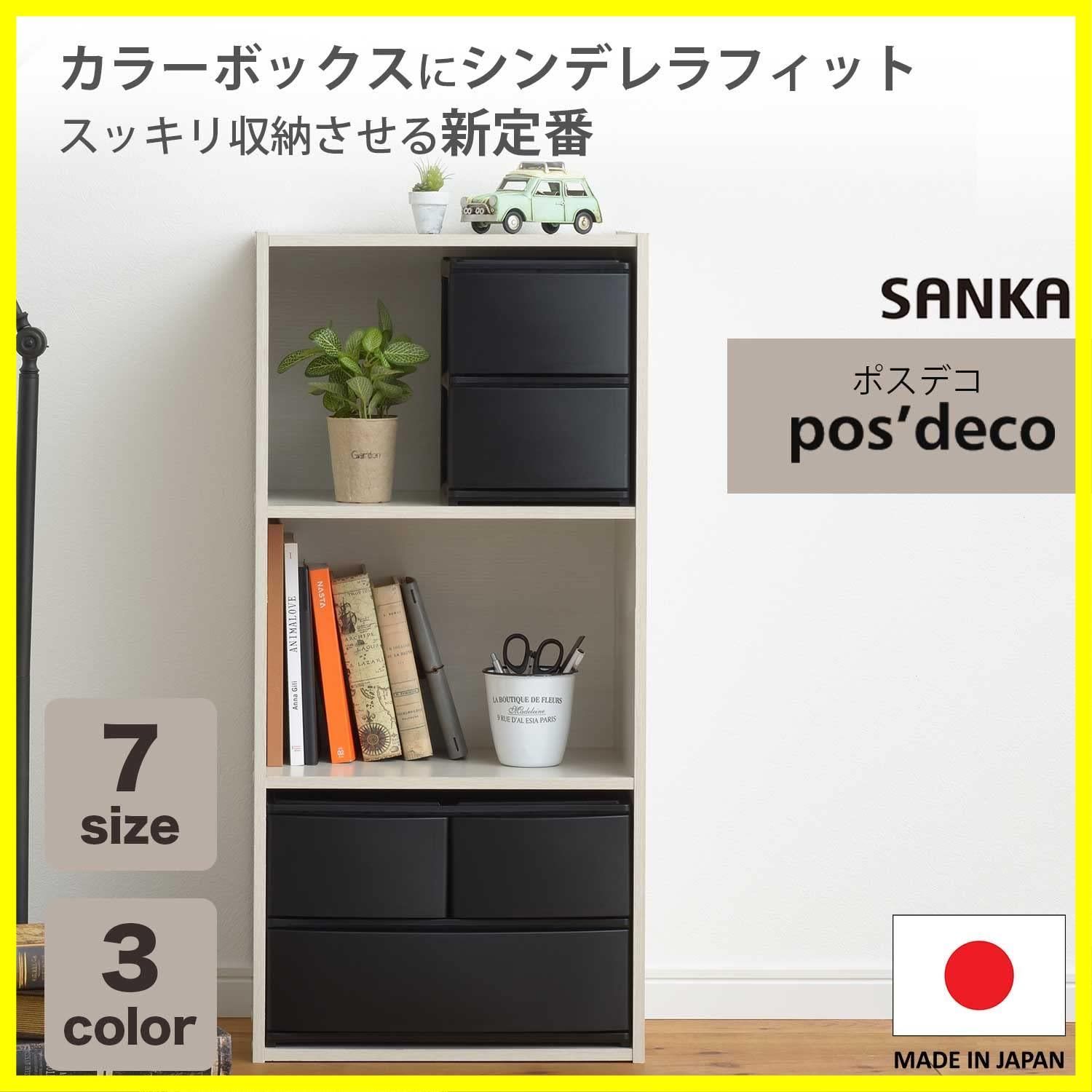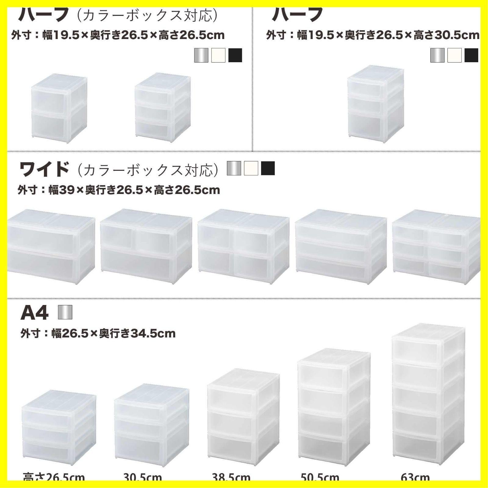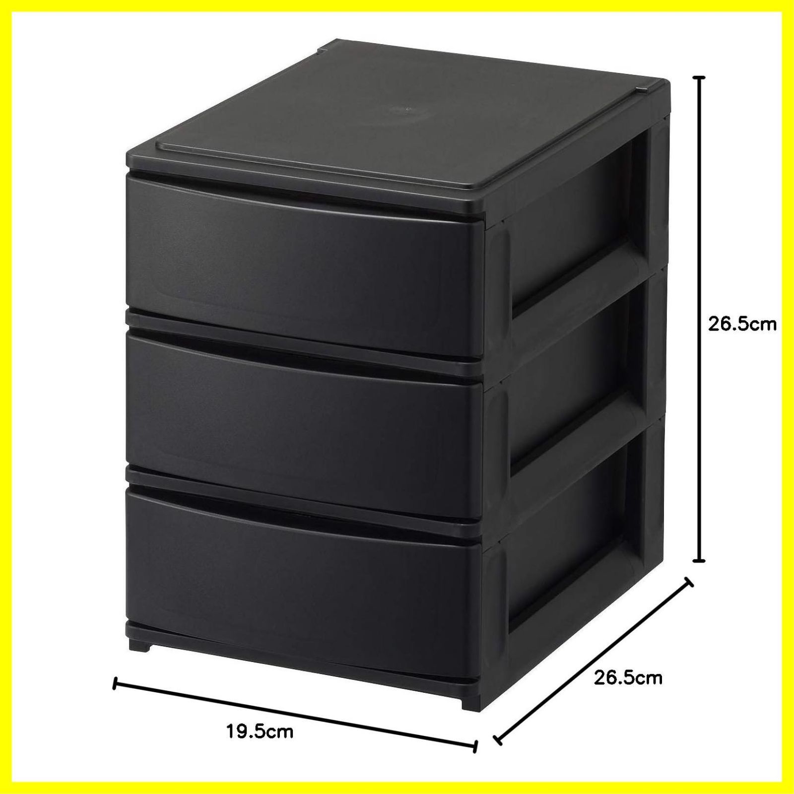 【最短発送】引き出し収納ボックス ハーフ 浅3段 ブラック カラーボックスにピッタリフィット ずれを防ぐラバーストッパー 重ねて使える スタッキングチェスト ポスデコ ロック機構 日本製 収納ケース 小物 サンカ 衣装 (幅19.5x奥行26.5x高さ26.5
