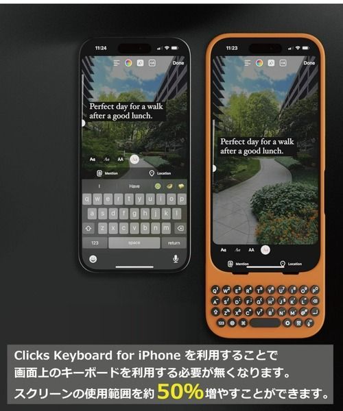 スマホをもっと快適に。Clicks Keyboard は、タイピングの楽しさと画面の広さを両立する、新しいiPhoneケースです。