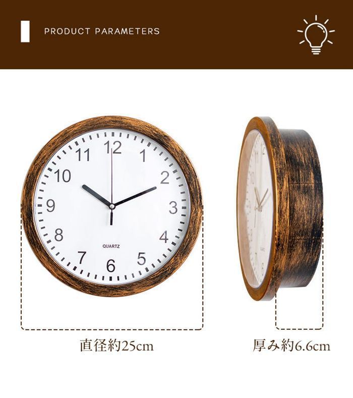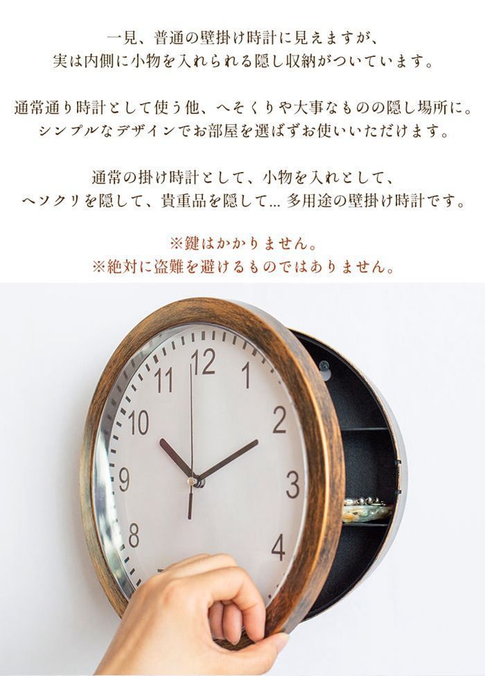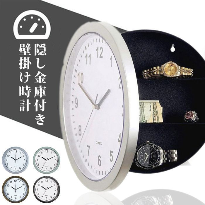 壁掛け時計 へそくり時計 隠し金庫 丸型 非電波 静音 へそくりに最適 壁セーフティボックス 隠し収納ケース シンプル 音がしない 直径25cm