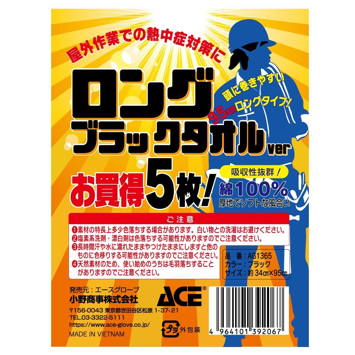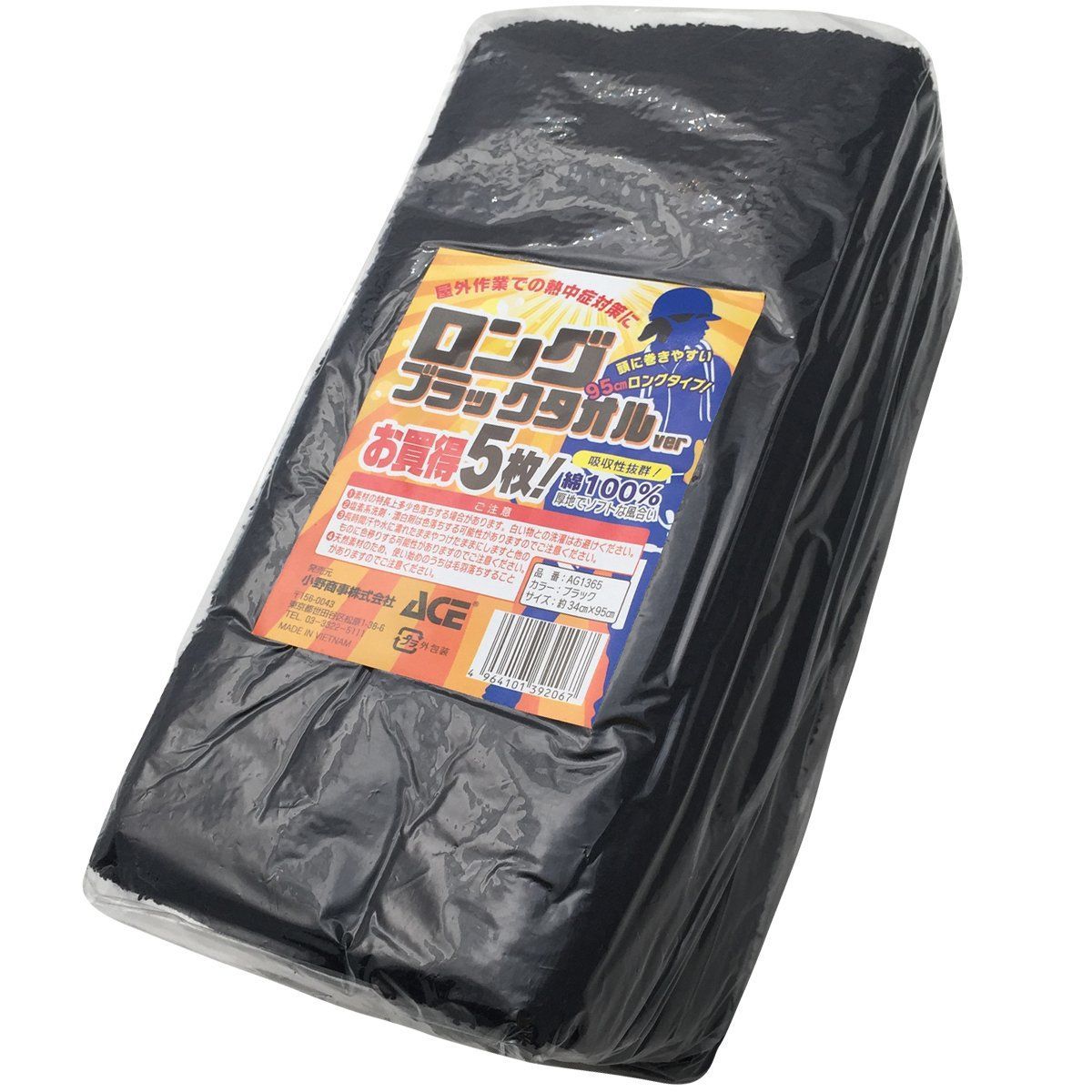 新品 ロング丈 業務用タオル 黒5枚組 200匁相当 エース 約34cm×95