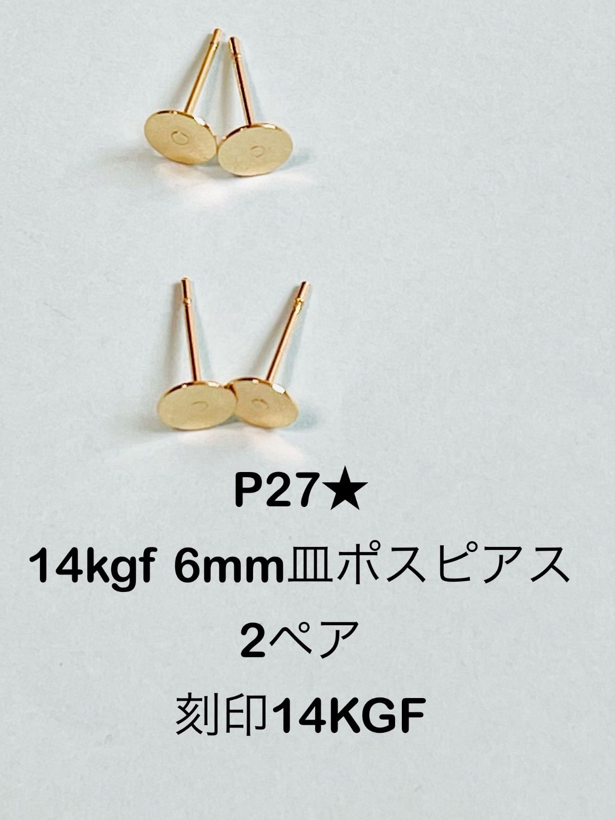 NO.P27★14kgf 6mm皿ポストピアス 2ペア 刻印14KGF