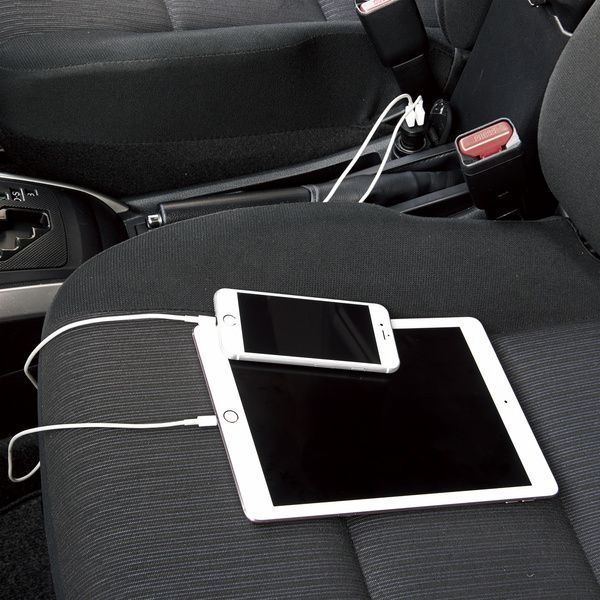 ■自動車のアクセサリソケットからUSBポートを介してスマートフォンやタブレットを充電できる車載充電器です。■USBポートを2ポート搭載し、スマートフォンの2台同時充電が可能です。■1ポートあたり最大2.4A、2ポート合計4.8Aの出力で充電できる高出力タイプです。■USBポートは、接続機器を自動で見分けて最適な出力で急速に充電できる“おまかせ充電”に対応しています。■12V/24V入力に対応し、普通車はもちろん、トラックなどの大型車でもご使用になれます。■電源が入ると青く点灯する通電確認LEDランプ付きです。■過充電・過放電・過電圧・過電流防止機能および短絡保護機能を備えた、端末や車を守るあんしん安全設計です。■※携帯電話や充電器が濡れた状態で充電すると、異常な発熱・焼損の原因となり大変危険ですのでおやめください。