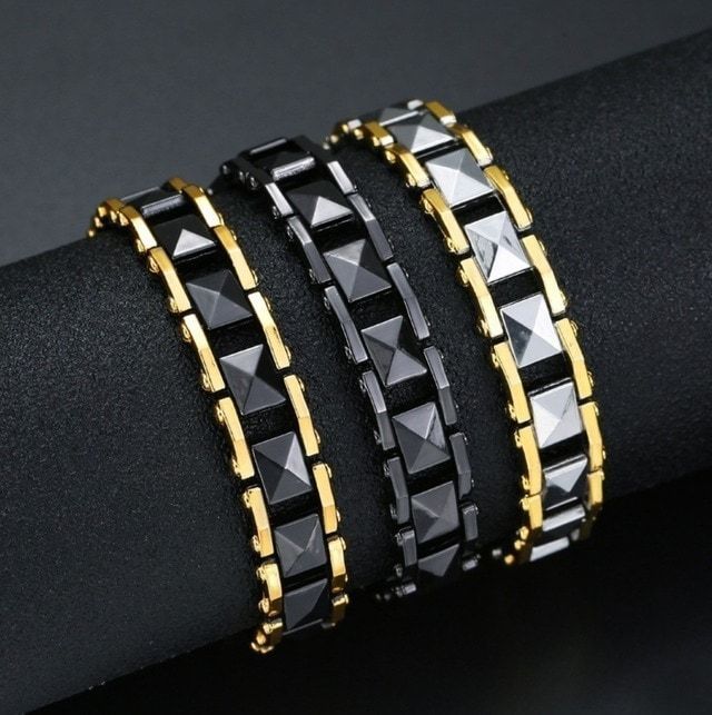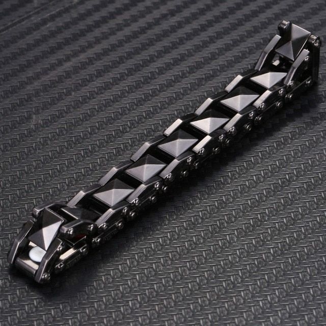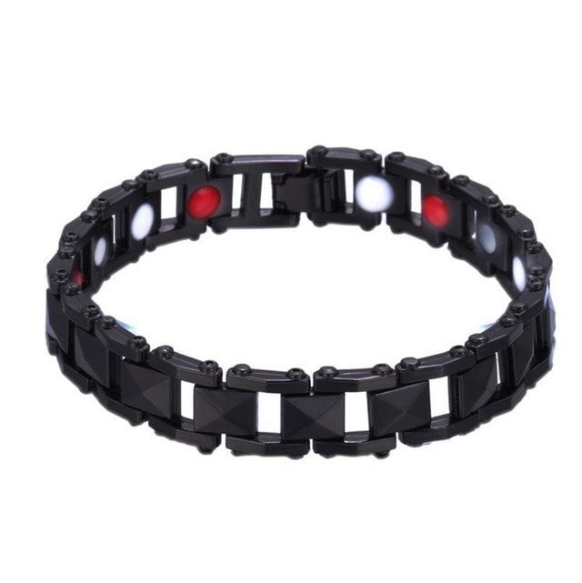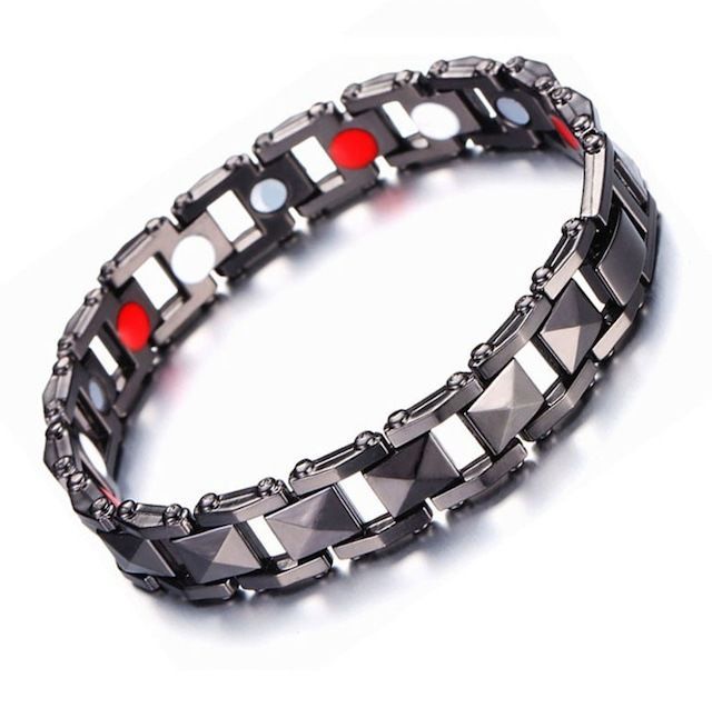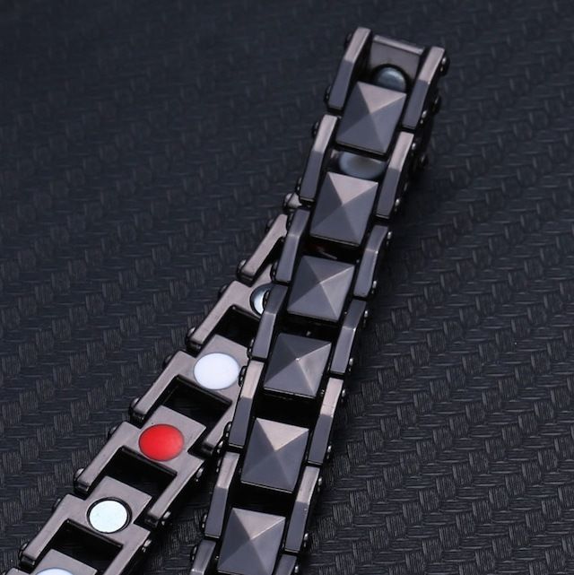 新品 ゲルマニウム 磁気 高品質 スタッズ デザインブレスレット 黒