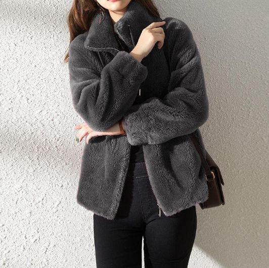 【グレー】ボアジャケット フェイクファー ジャケット コート レディース ショート丈 ふわもこ アウター 軽量 暖かい 秋 冬 カジュアル おしゃれ かわいい