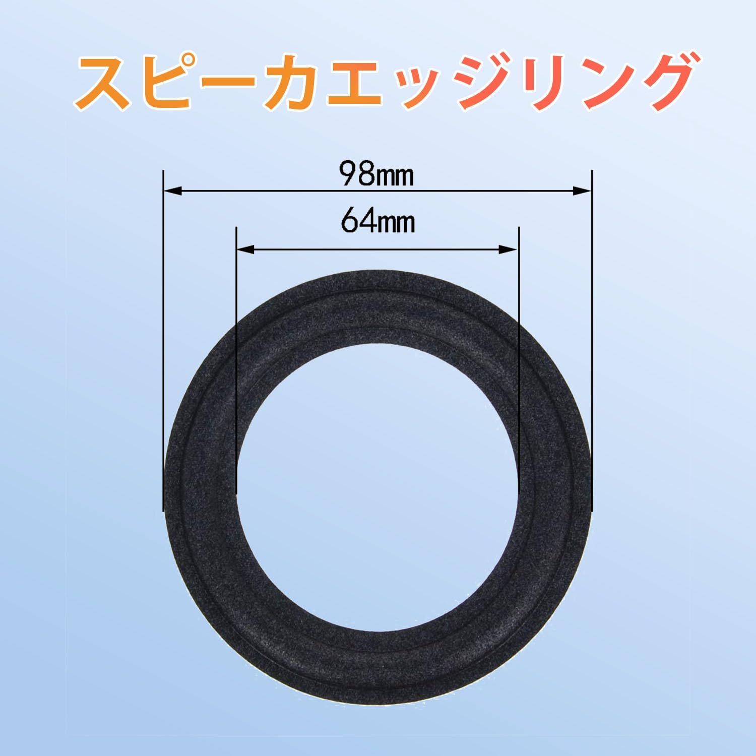 新品 スピーカー修理DIY サラウンドリング交換 アクセサリー サラウンド 4インチ 内径64mm ブラック 外径98mm 2個入り オーディオスピーカー フォームスピーカー スピーカーエッジ Aicosineg