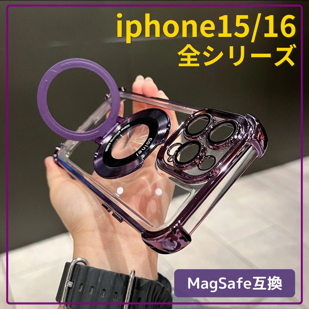 ∥※ iphone15/16 全シリーズ ※ MagSafe マグセーフ ケース 紫色 透明 クリア レンズ保護 スタンド付き iPhone15 iPhone16 全シリーズ Pro / Plus / ProMax / E ワイヤレス 充電 カバー ③