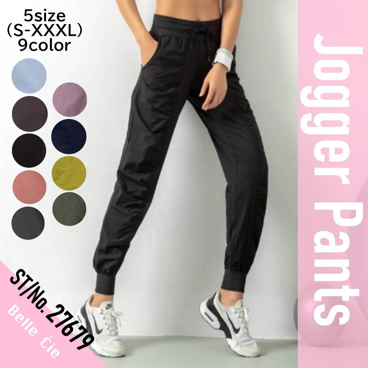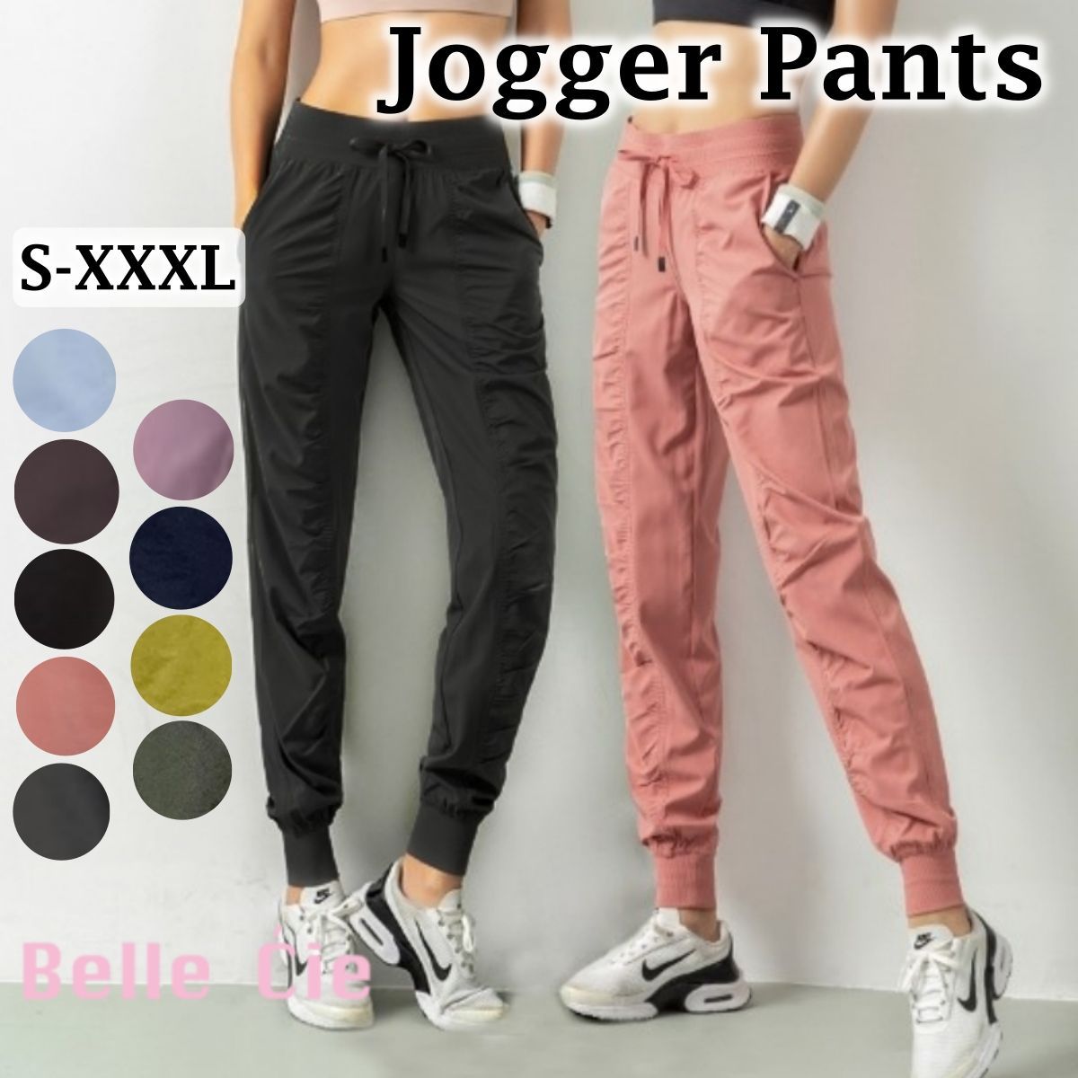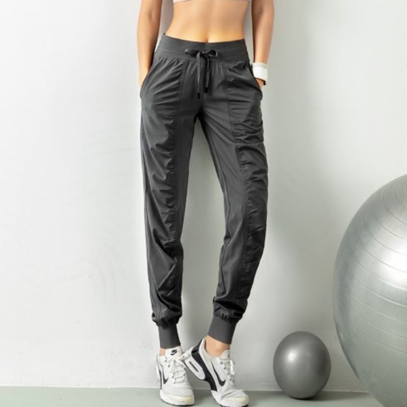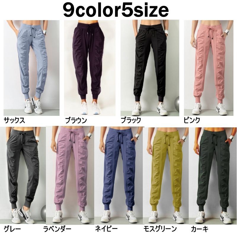 ジョガーパンツ レディース ジム トレーニング ランニング ヨガ スポーツウェア ズボン ギャザー入り クール 無地 スタイルアップ 韓国風 カジュアル 大人可愛い ロング丈 体型カバー S〜3XL対応 9色展開 春 夏 秋 グレー